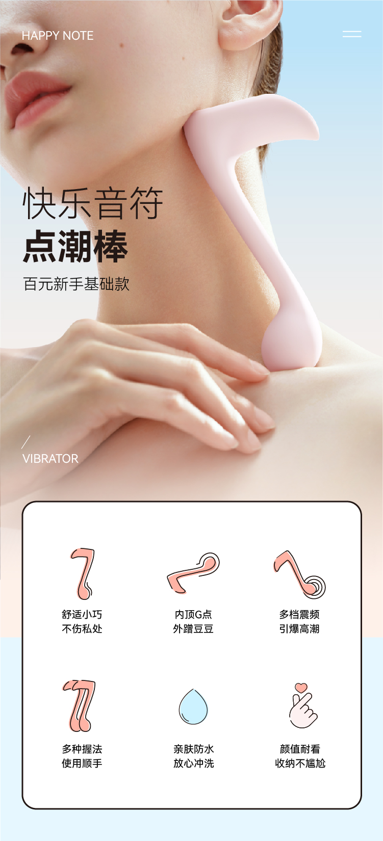大人糖快乐音符G点振动棒 女性自慰器吮吸蜜豆高潮夫妻情趣玩具