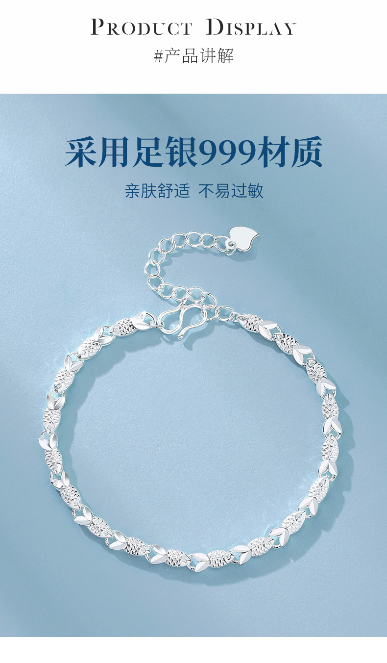 闽粤足银999手链不掉色夏季女款轻奢国风小众高级感设计幸运锦鲤