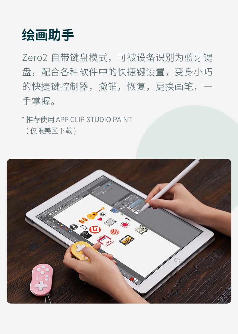 迷你蓝牙手柄 独特小巧外形 多平台支持 贴心绘画助手