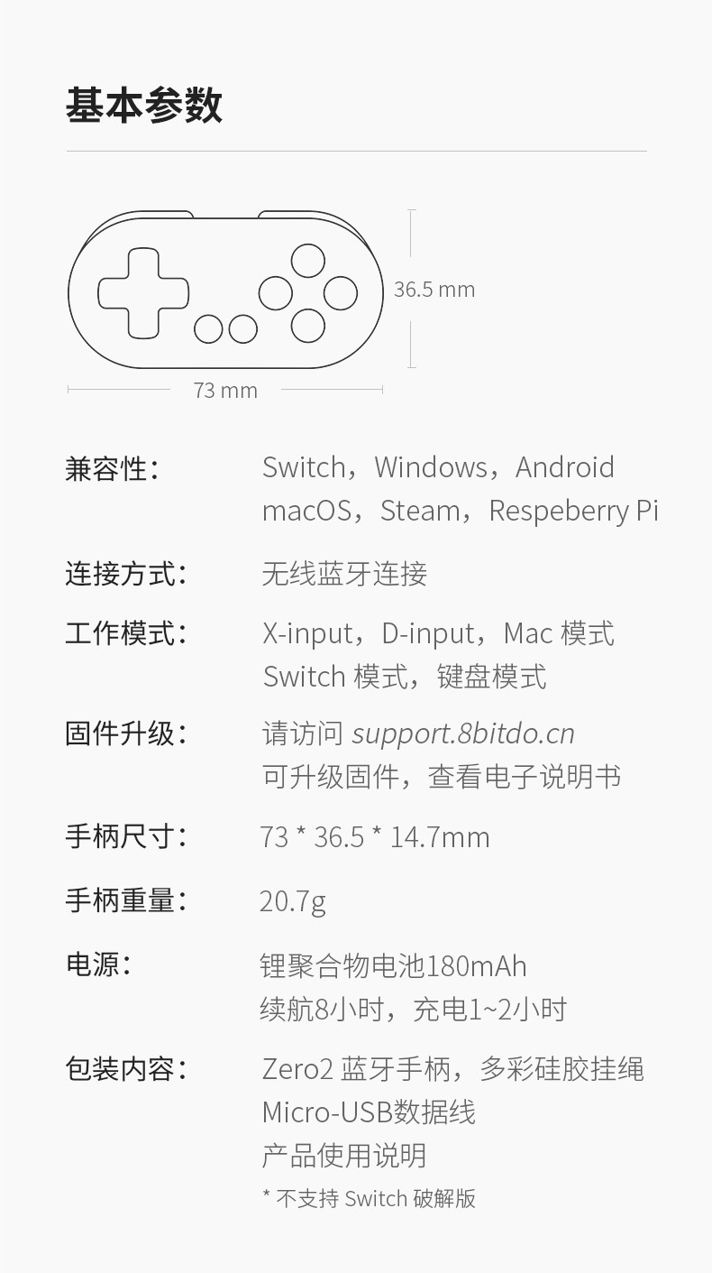 八位堂Zero2迷你小手柄无线蓝牙安卓手机Steam电脑任天堂Switch/ipad画画工具