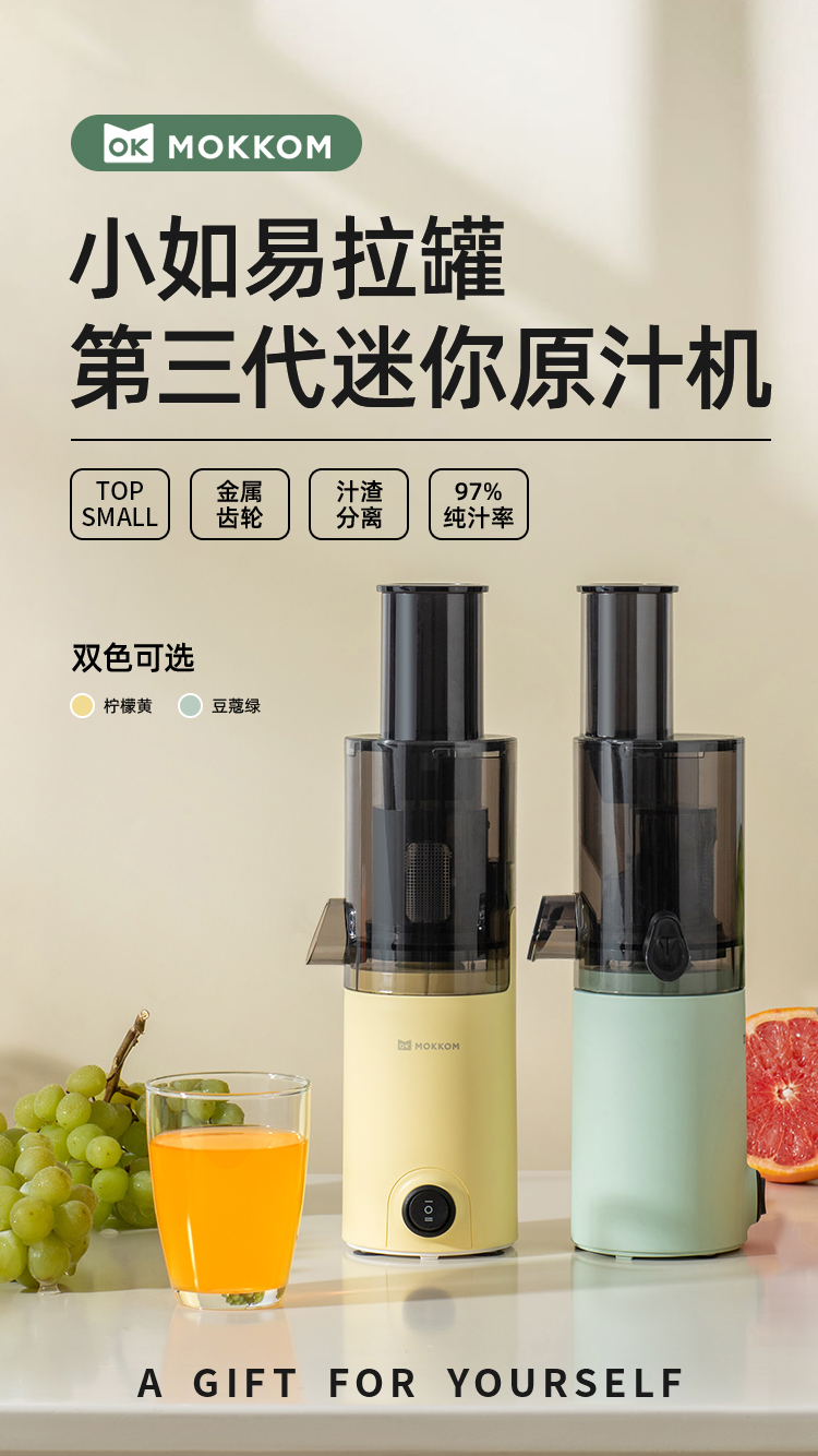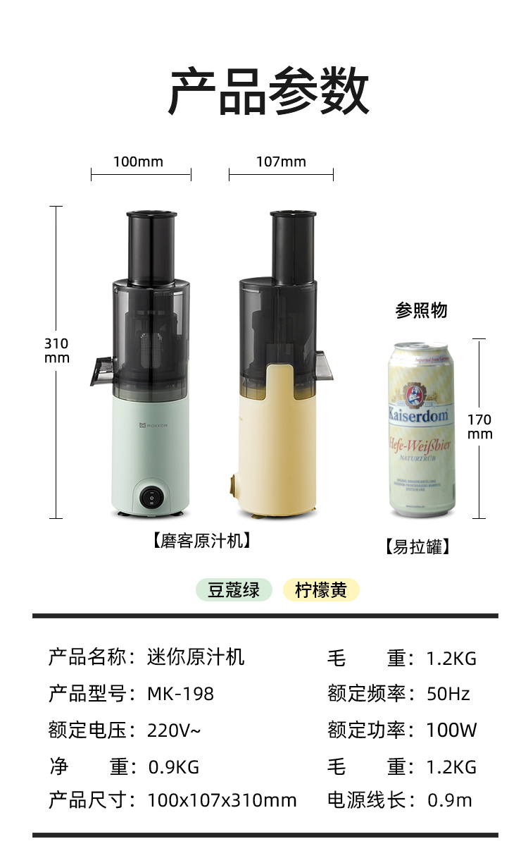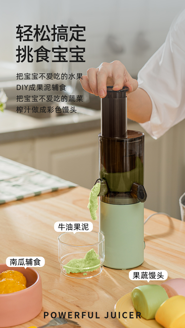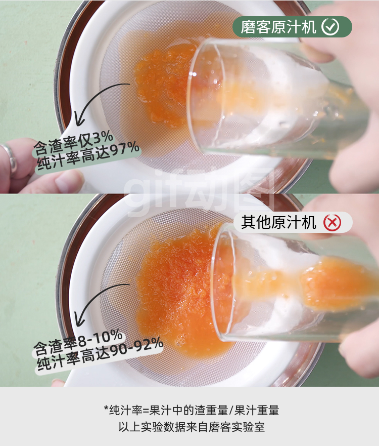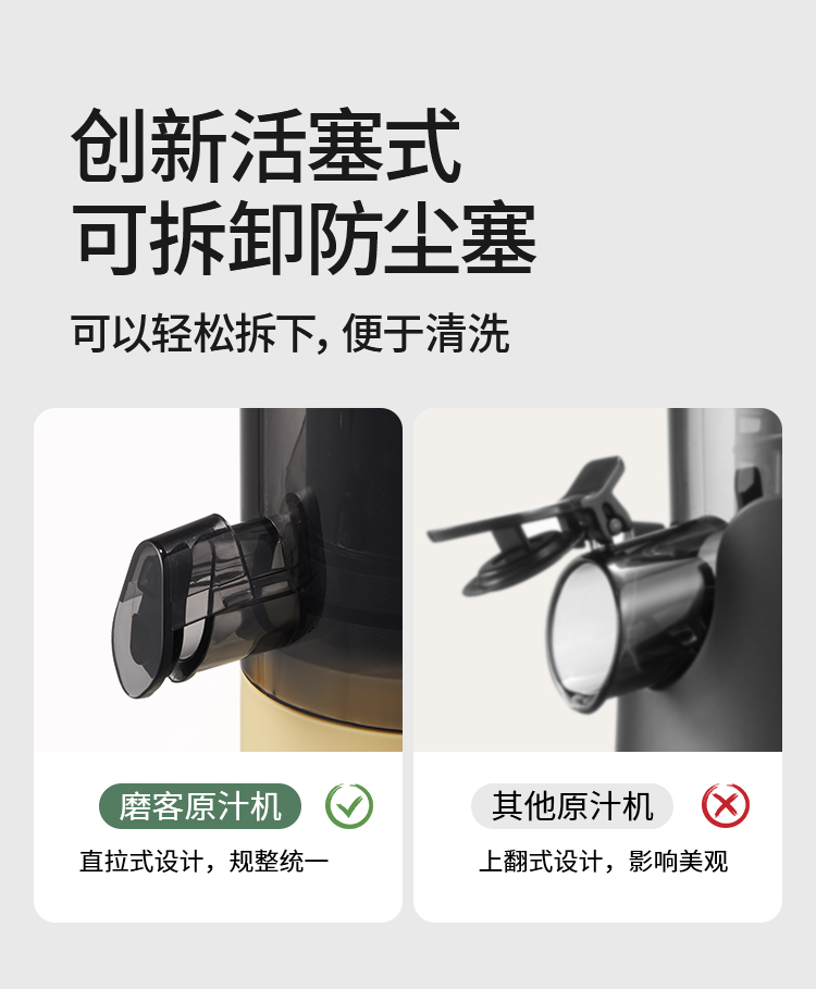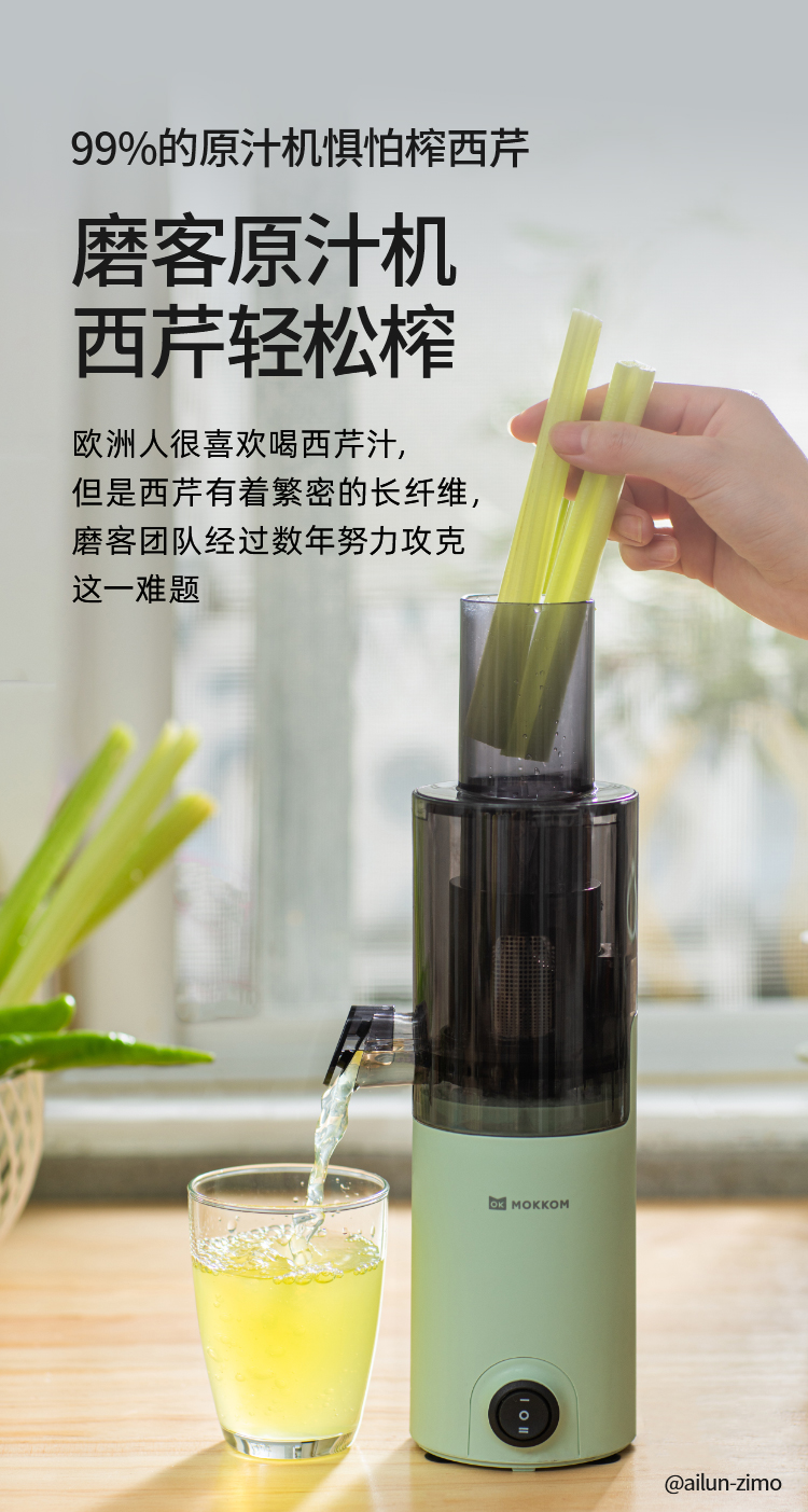 仿古法研磨,低速揉磨,不会破坏水果细胞壁;金属齿轮电机,汁渣分离;