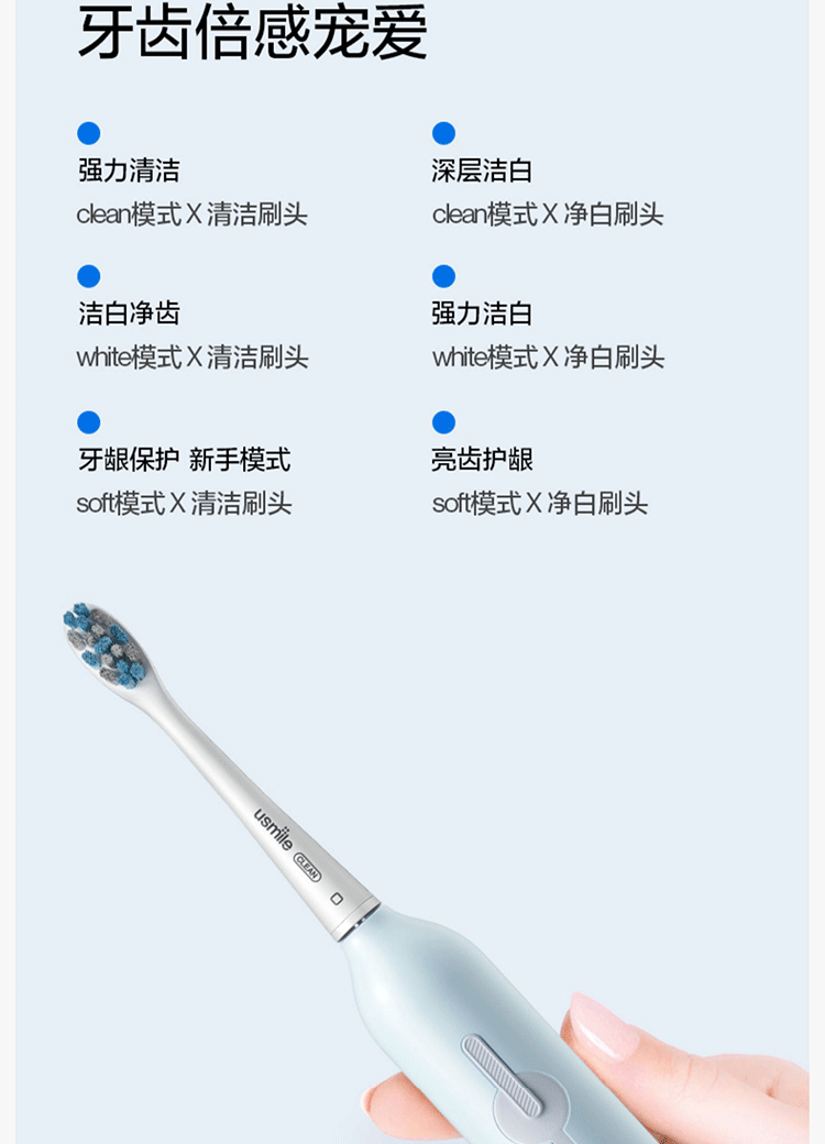 usmile电动牙刷1号刷 男女成人充电式软毛牙刷声波自动防水