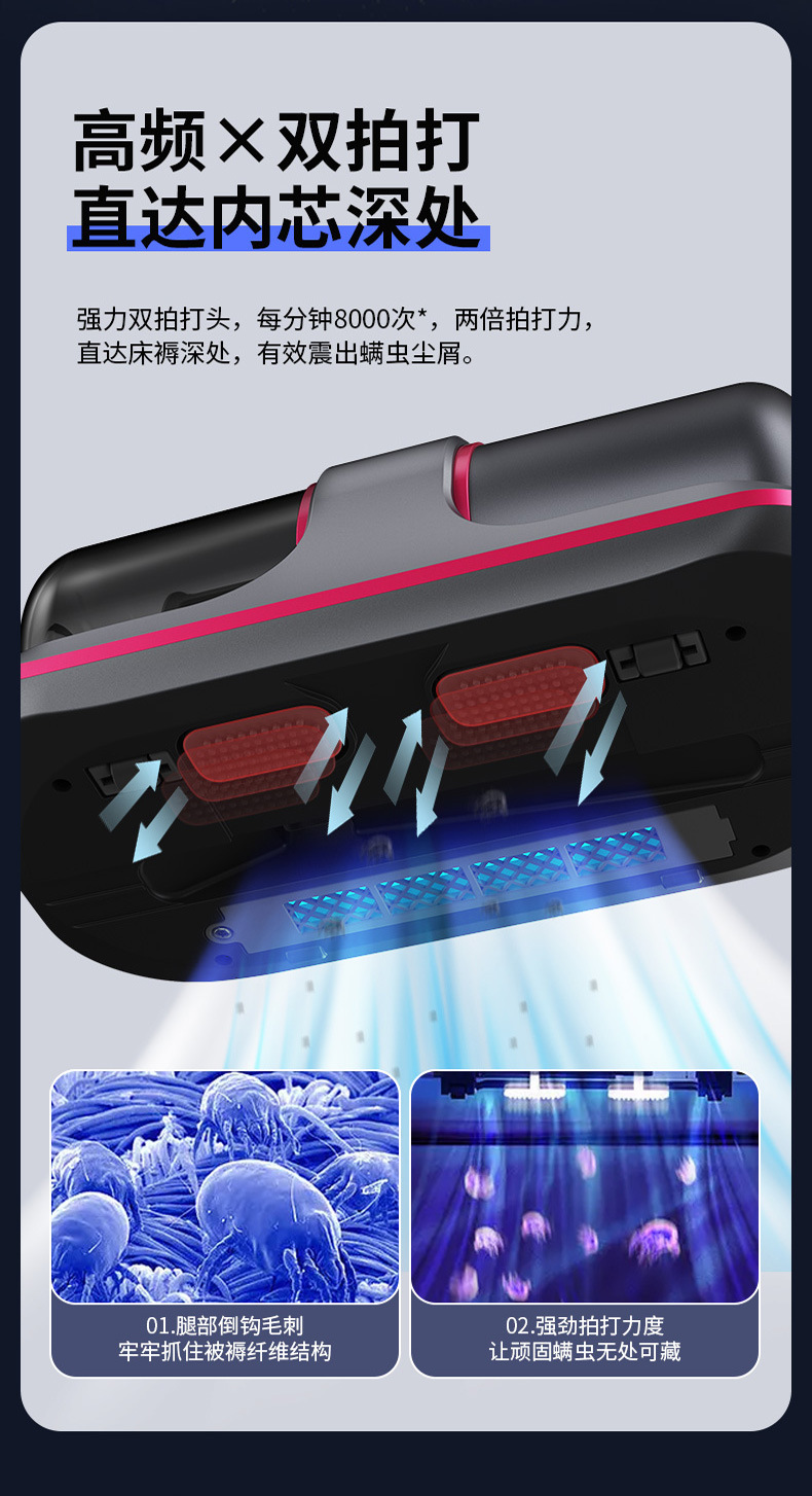 居嘉无线充电除螨仪 紫外线杀菌机去螨虫神器扫床铺吸尘仪