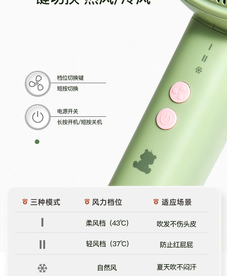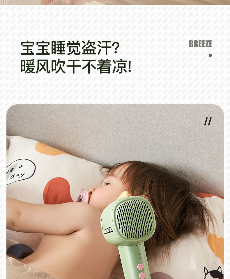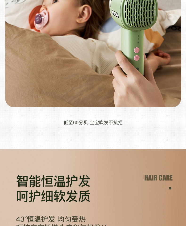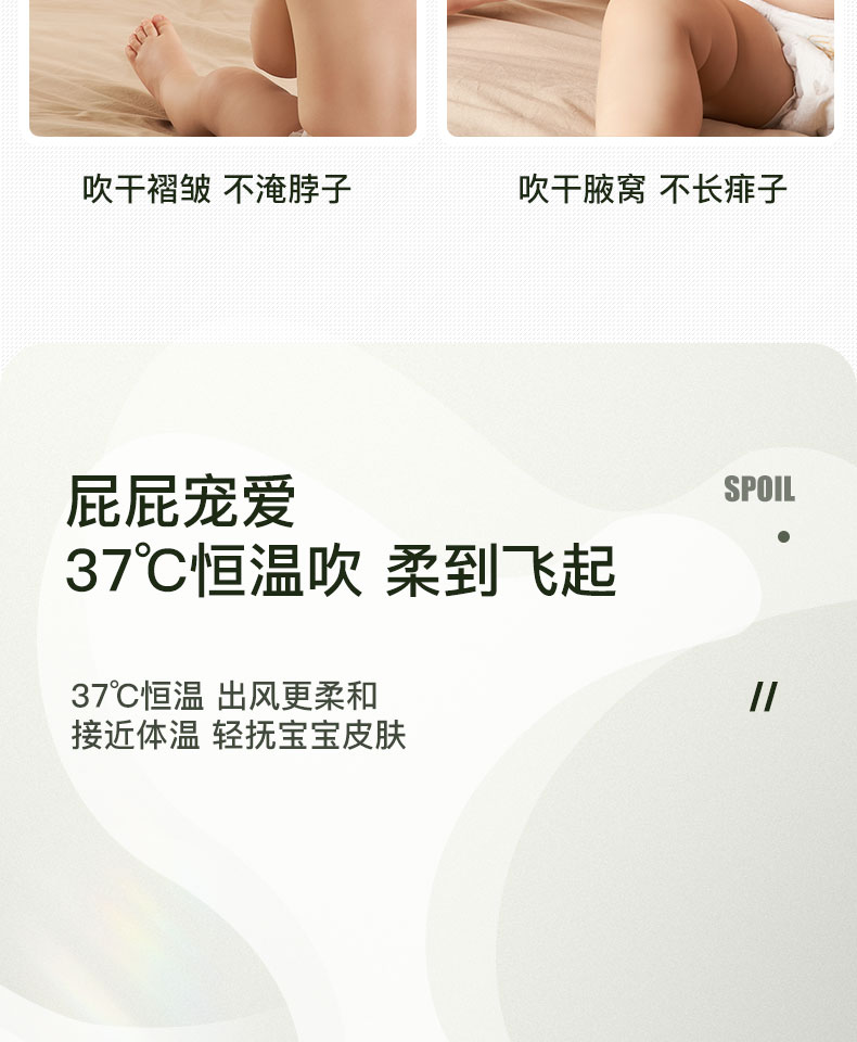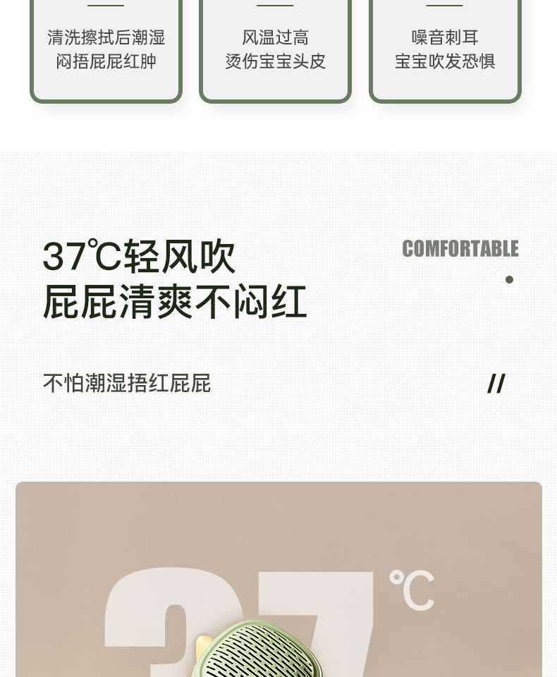 37°恒温吹,接近体温,轻抚宝宝肌肤