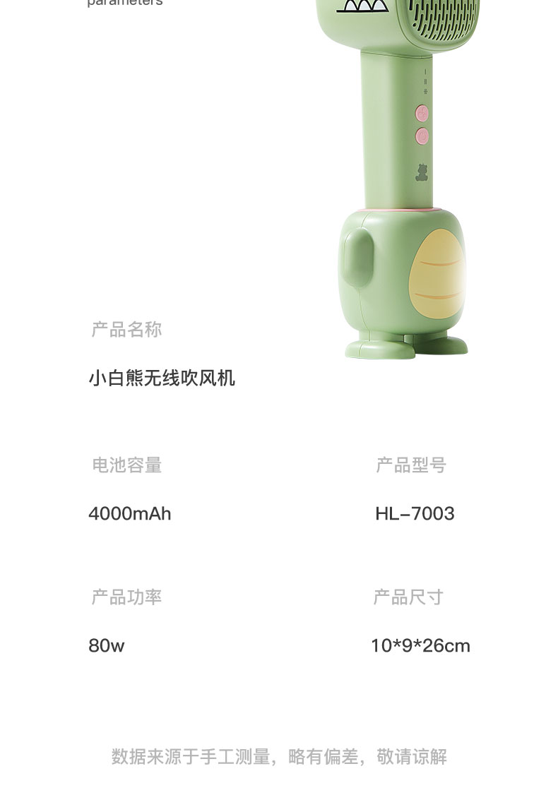 小白熊 婴儿吹风机 宝宝专用无线恒温低辐射电吹风吹屁屁儿童吹风筒
