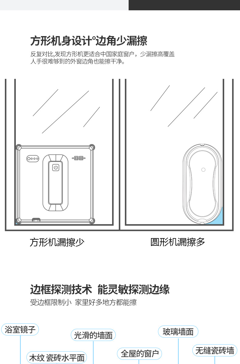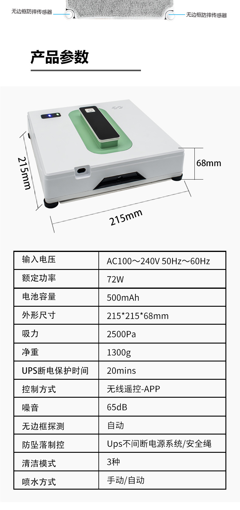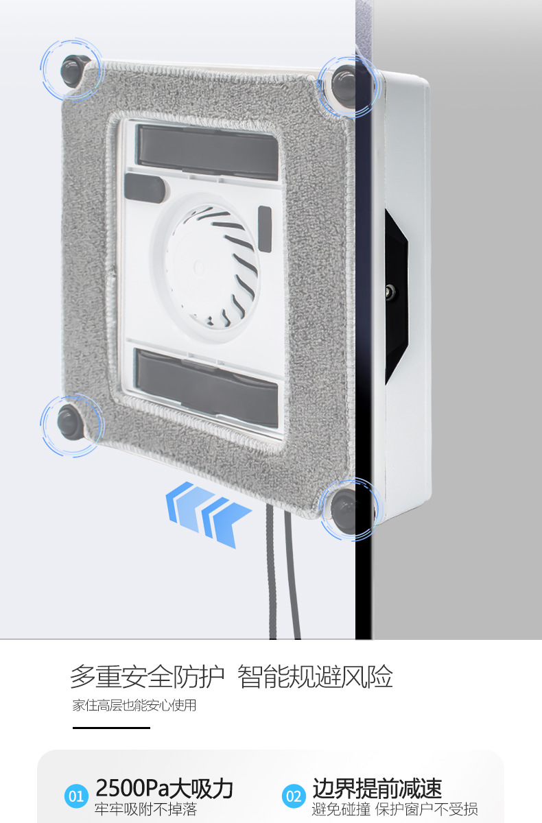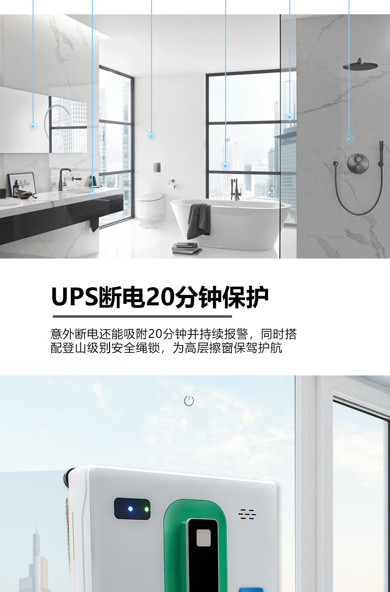 边界处提前减速,保护窗户不受损;UPS断电20分钟保护;