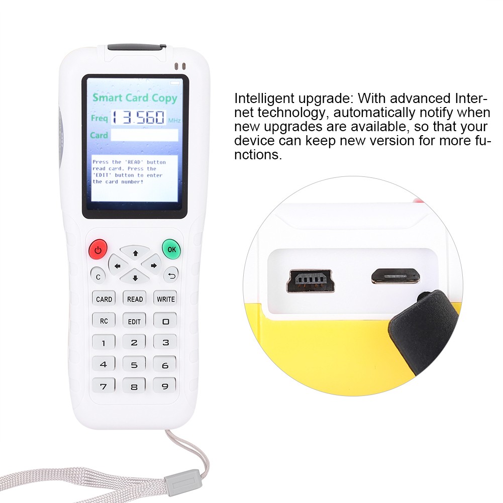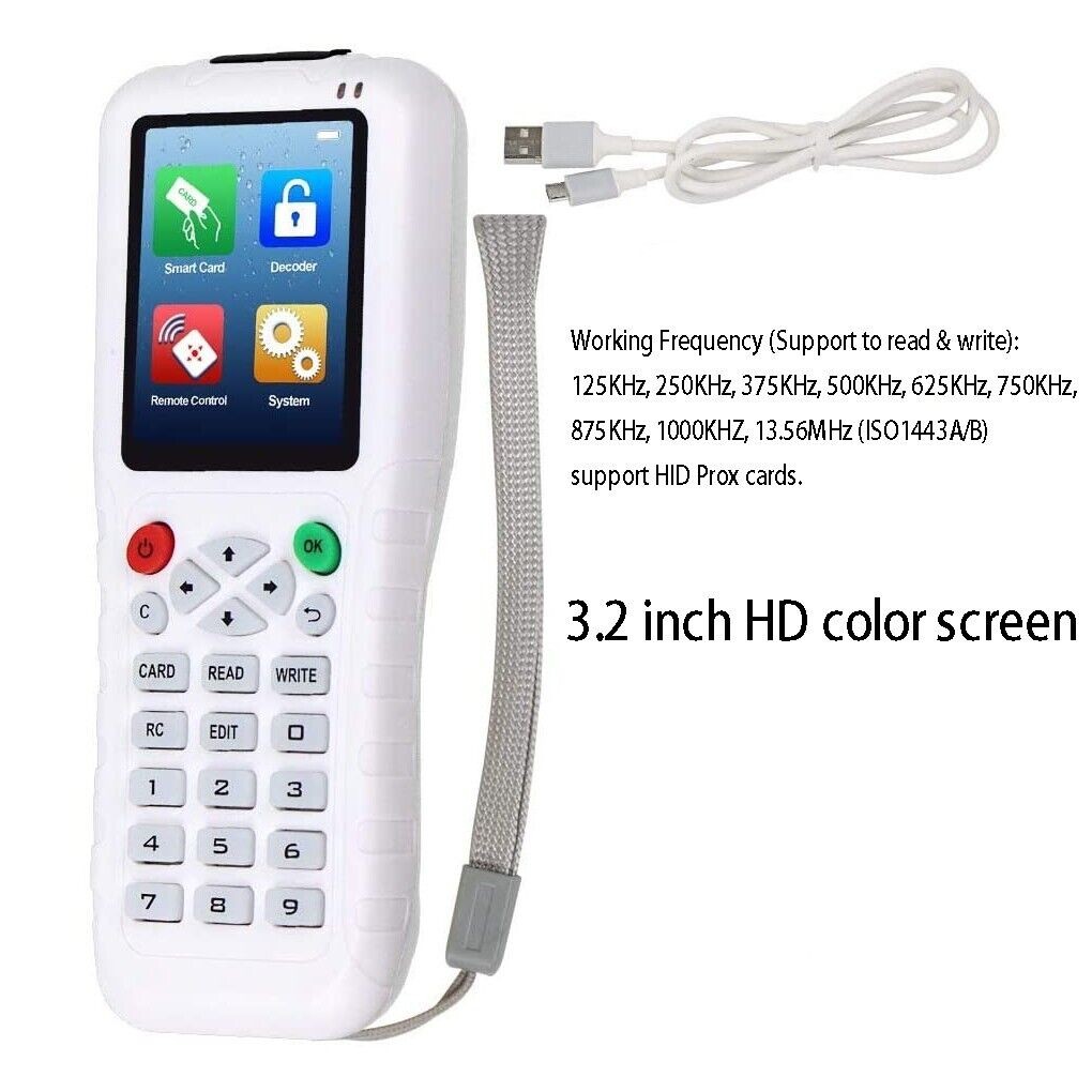 Support all smart cards: support IC, MF1,ID, TK4100,EM4100, HID26, HID35, HID37, GID64, GID50, GID40, GID32, GID16, SID64, SID50, SID40, SID32, 125KHZ-13.56, etc.