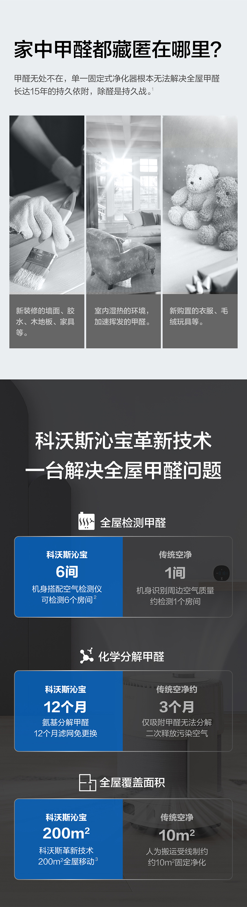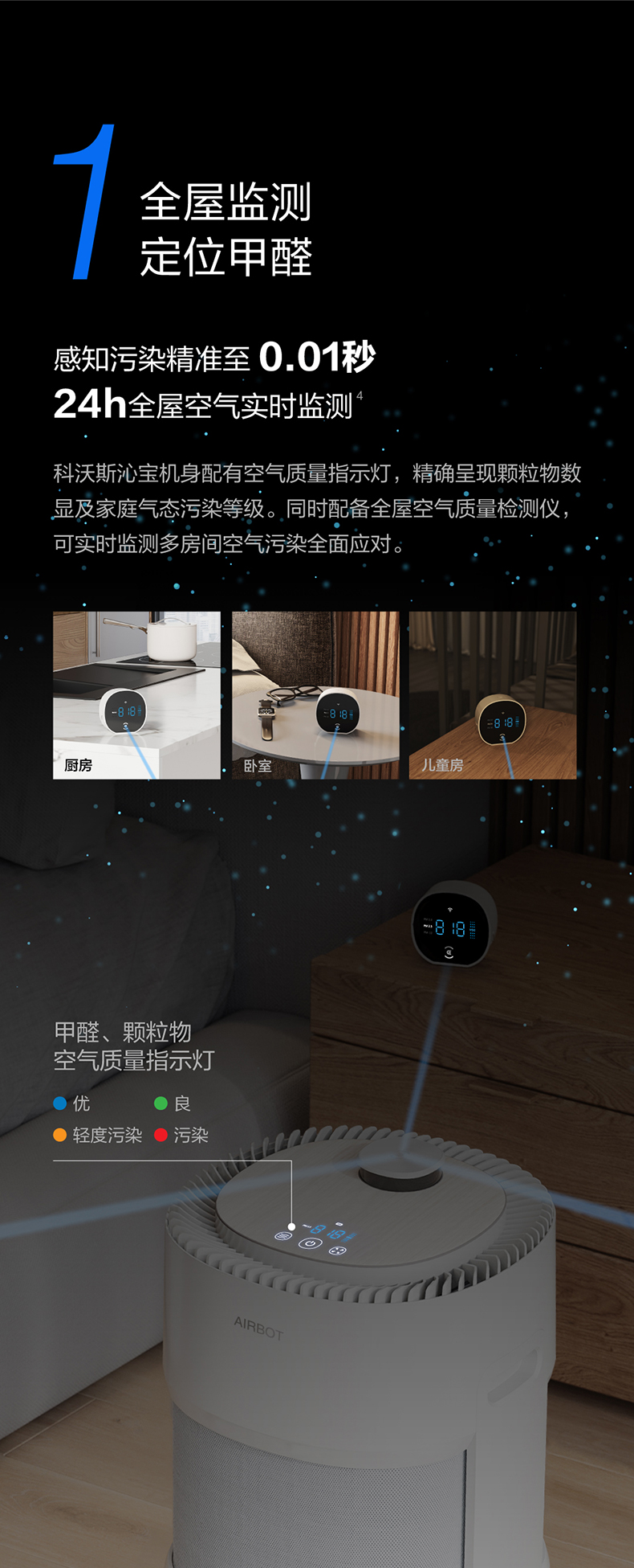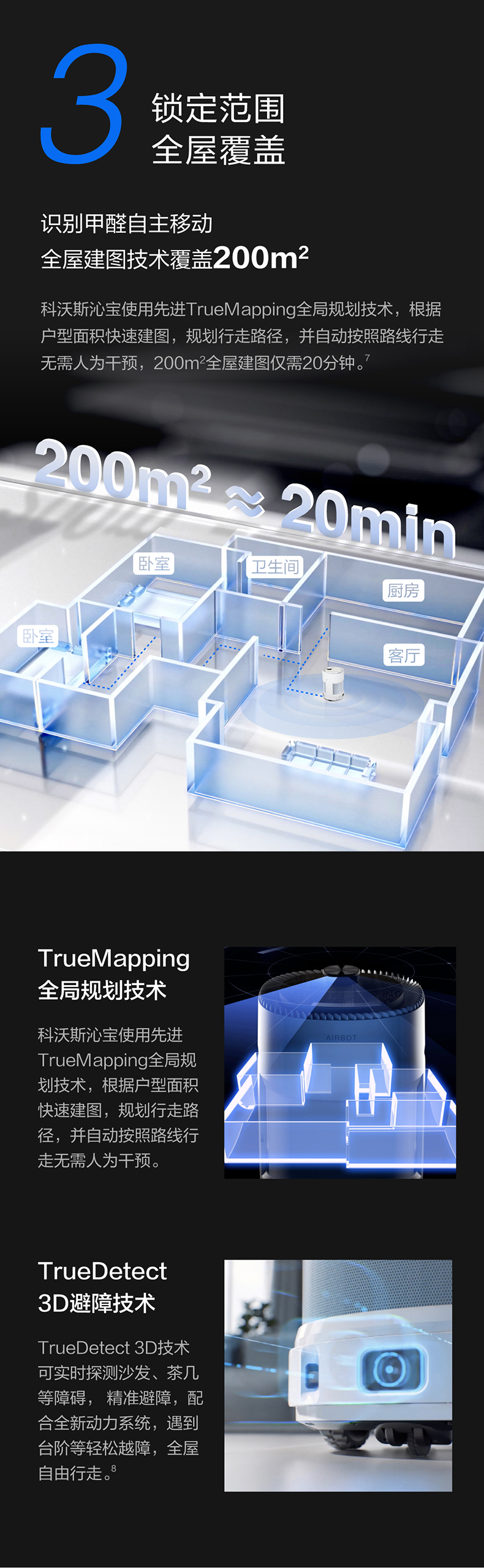 全屋检测定位甲醛 持续不断瓦解细菌 全屋建图技术覆盖 3D避障技术