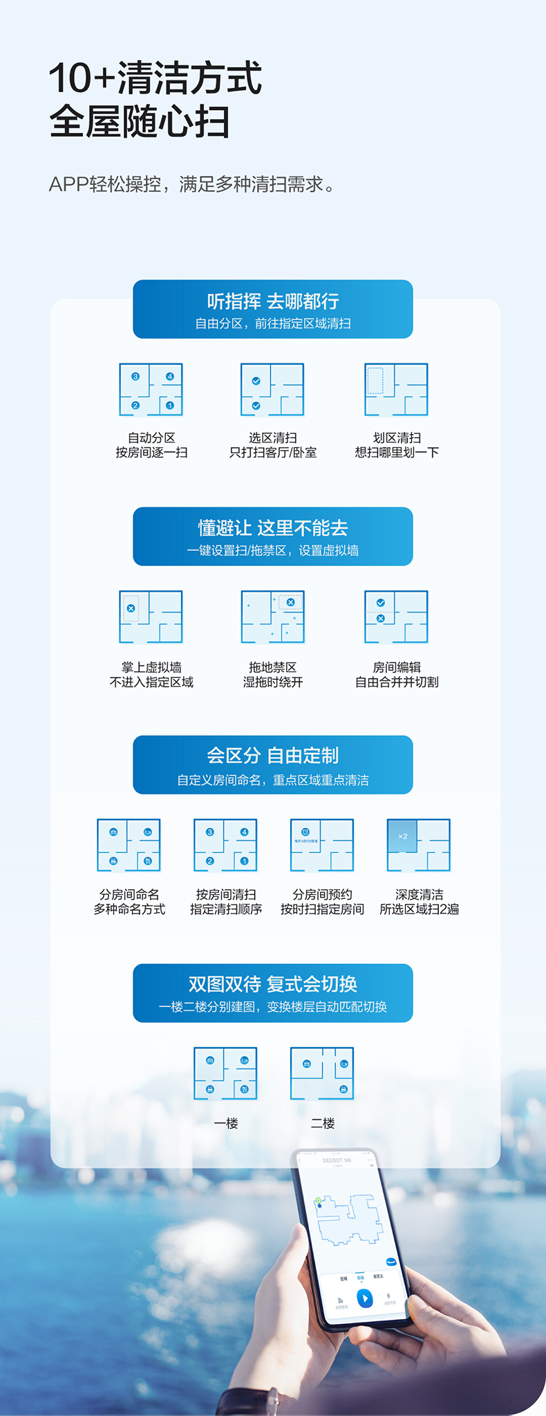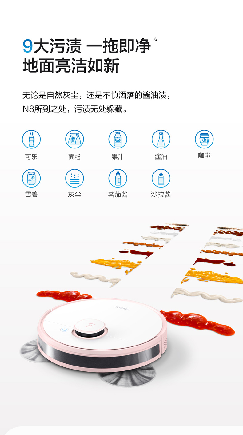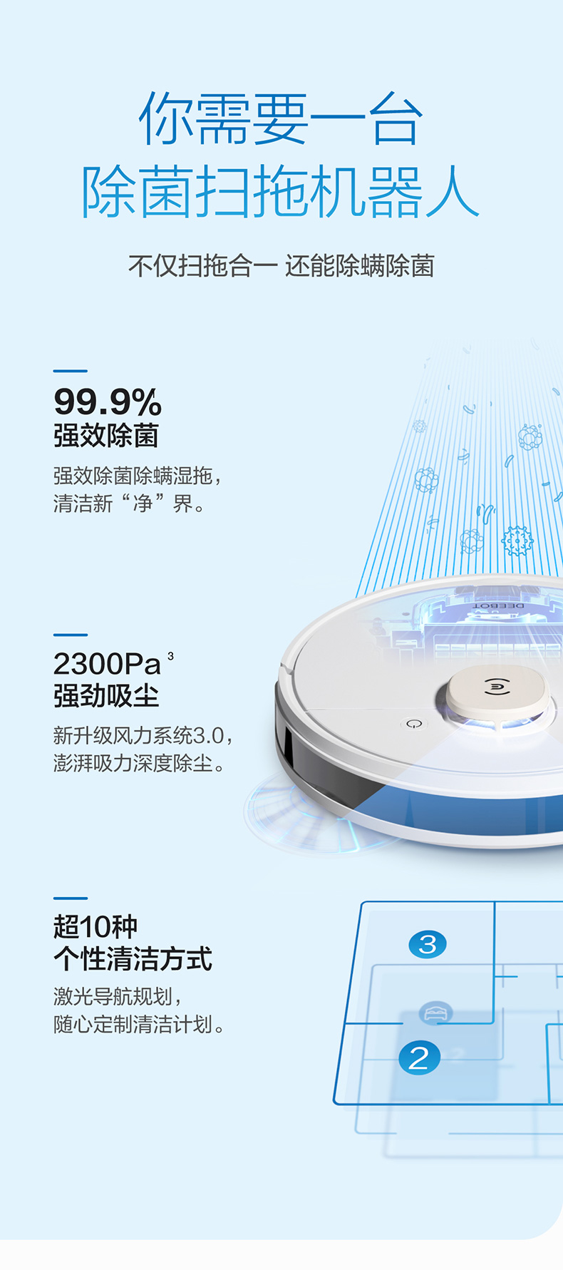 强效除菌 强劲吸尘 超10种个性清洁方式? 免洗除菌湿拖布 3挡控水