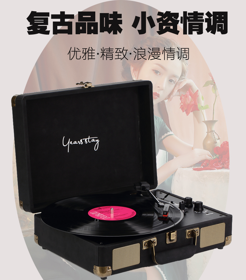 黑胶唱片机? 多种颜色 支持蓝牙 方便携带 皮革材质 复古氛围