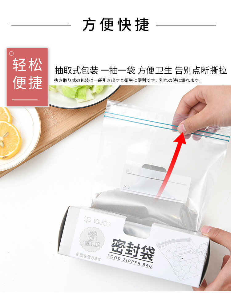采用日本冰箱双筋密实设计,保持食品的新鲜和营养。加厚自封袋,材质优质,耐用可靠,有效防止食物受潮变质。
