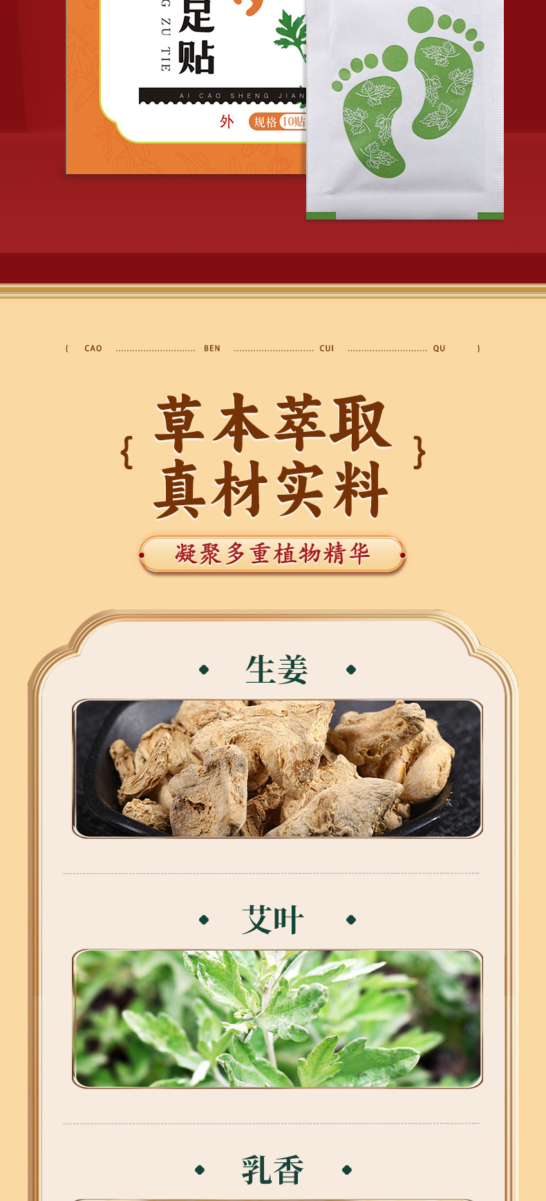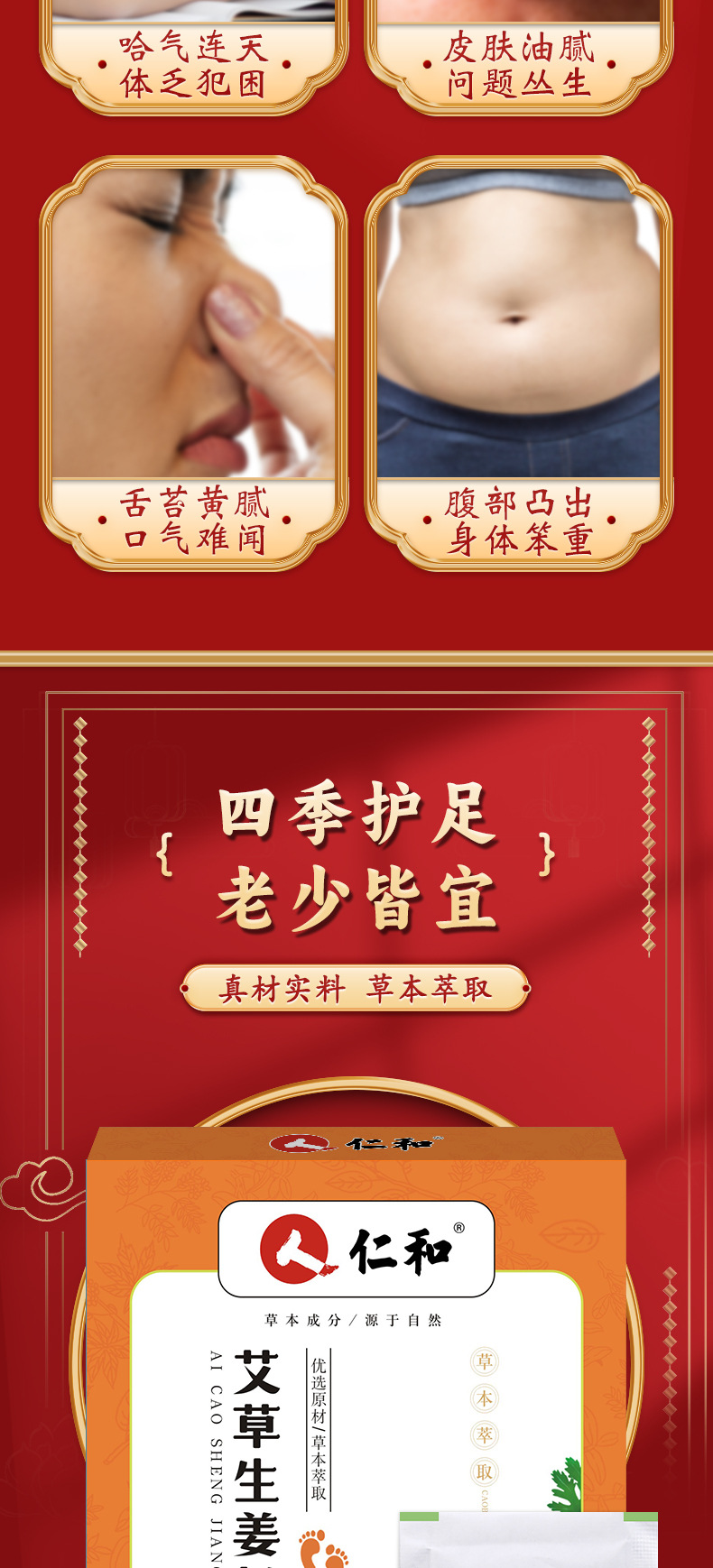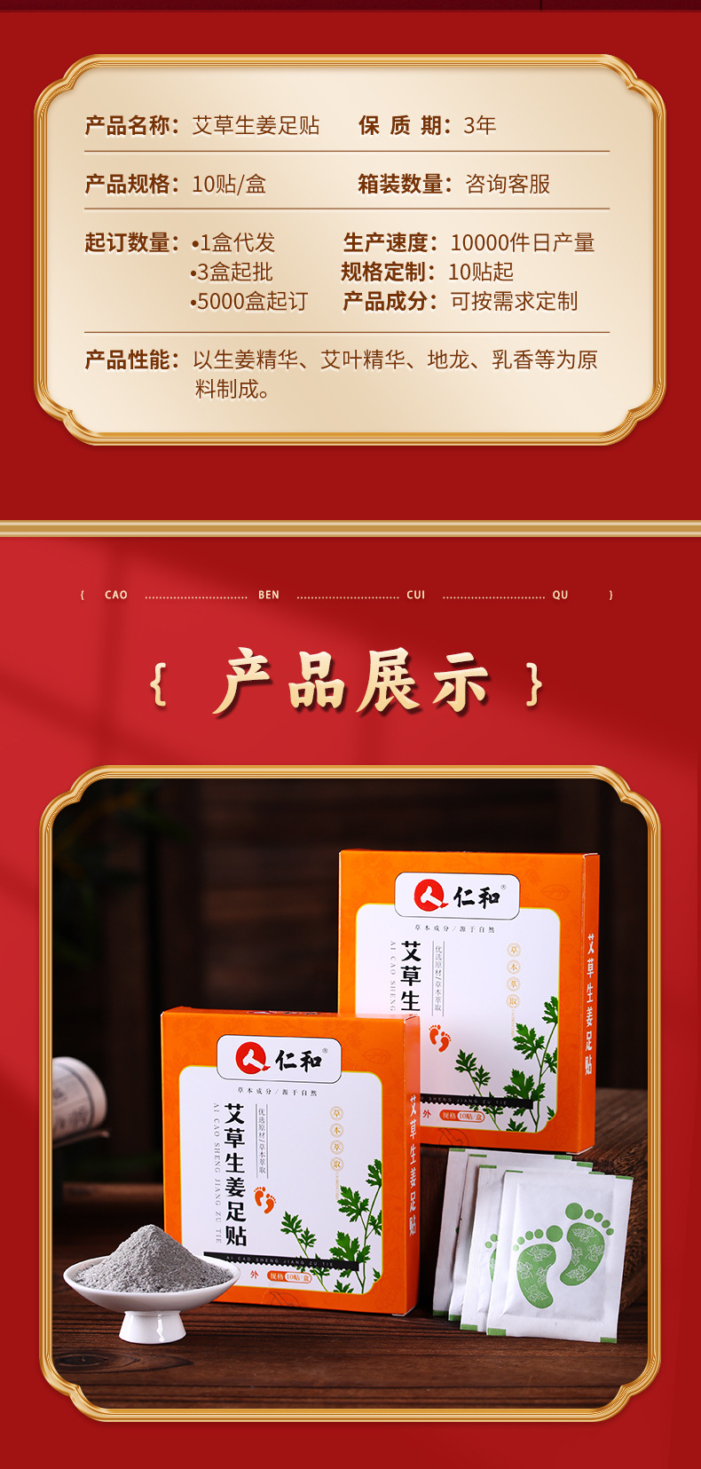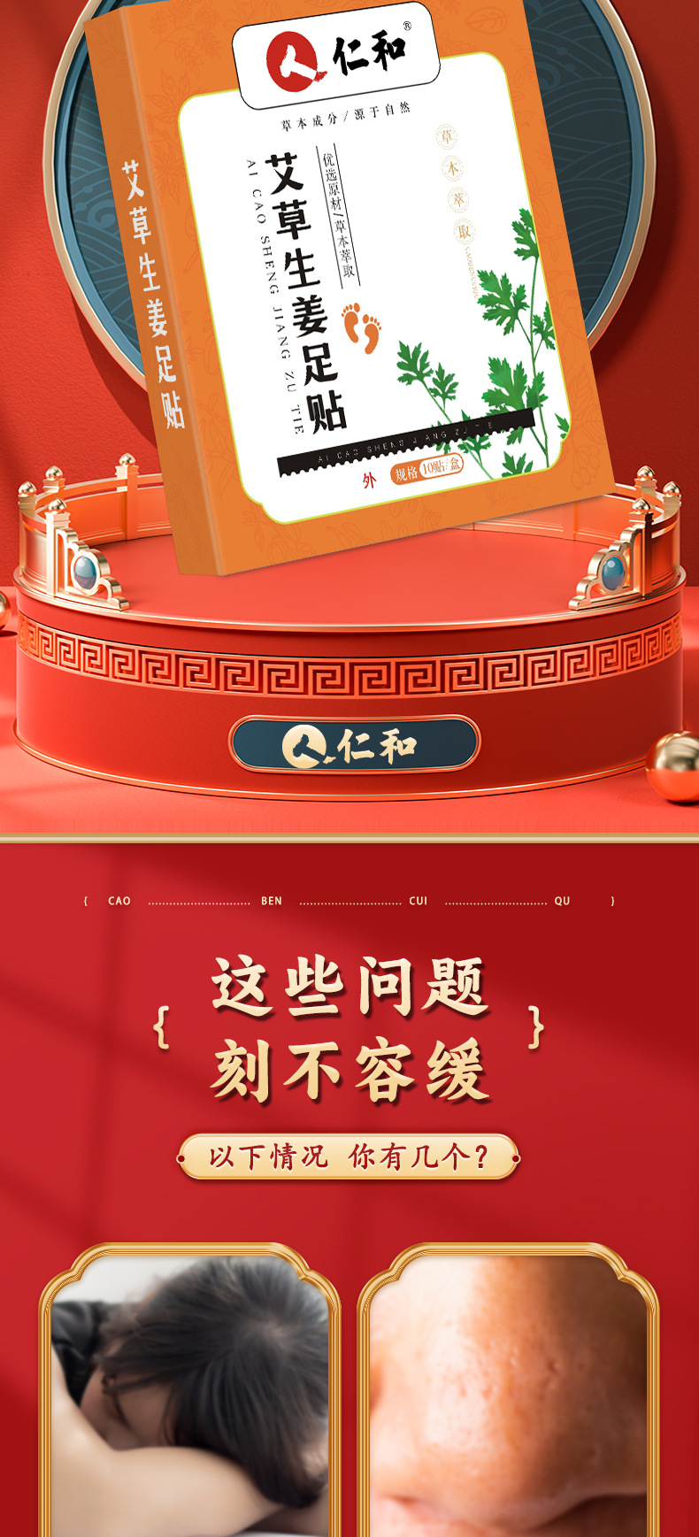 仁和艾草足贴 足部护理生姜竹醋艾灸家用按摩睡觉艾灸贴