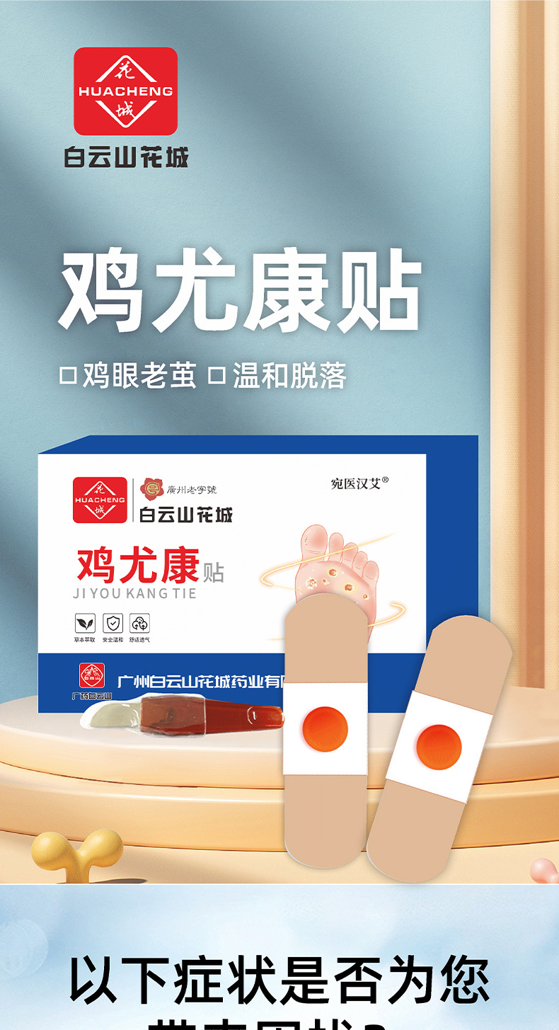 白云山花城鸡眼贴足部护理 去鸡眼老茧死皮肉刺抑菌草本鸡眼贴