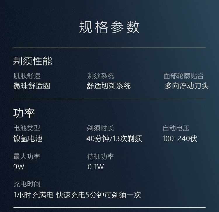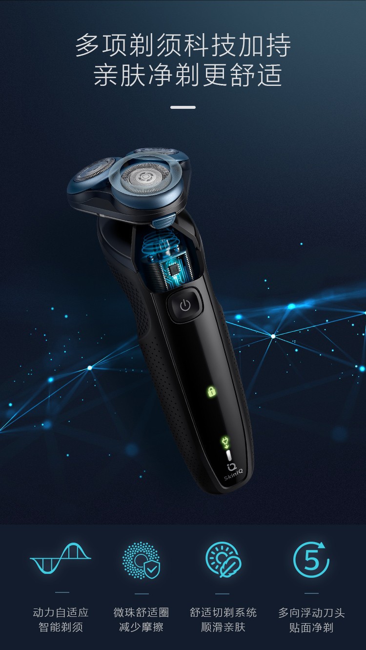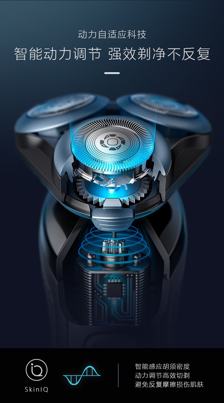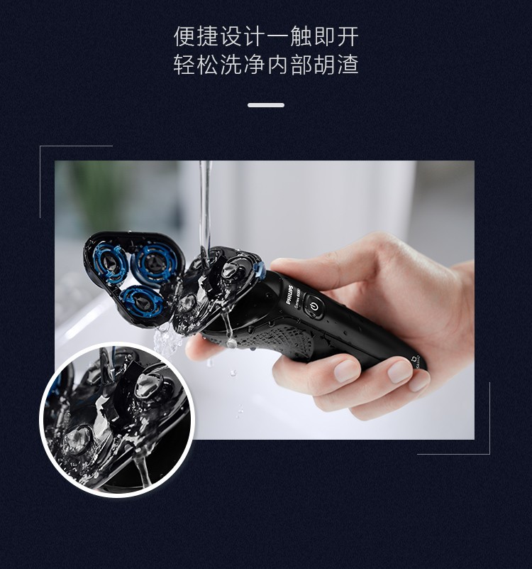 便携设计一触即开,轻松洗净内部胡渣;动力自适应智能剃须刀;