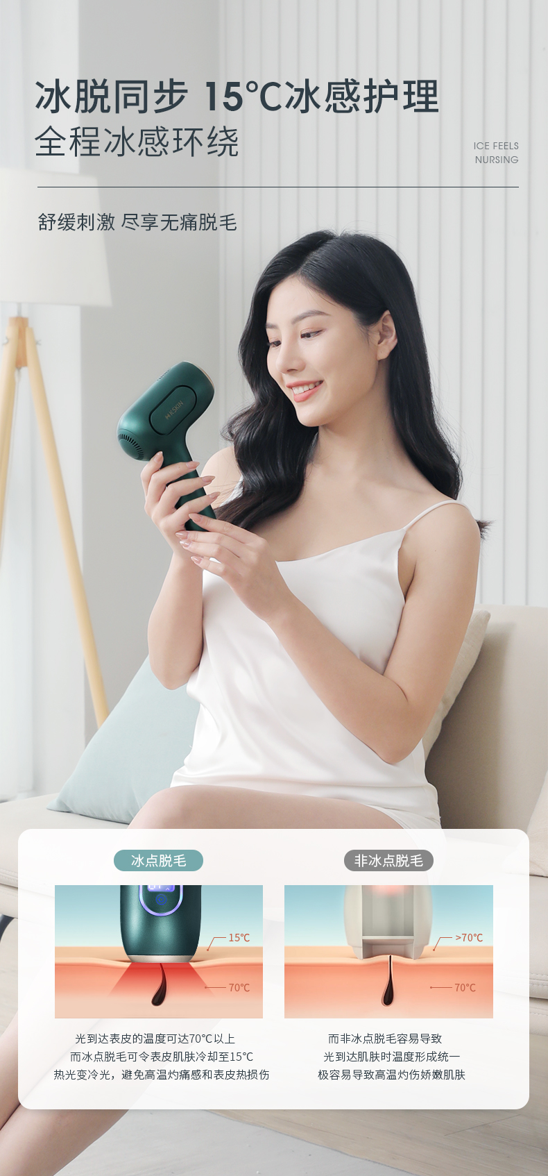 冰脱同步10°C冰感护理 全程冰感环绕