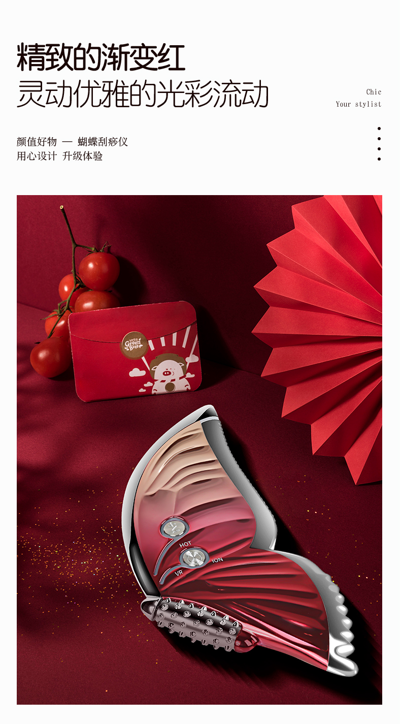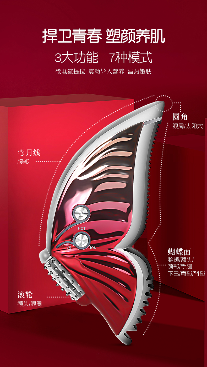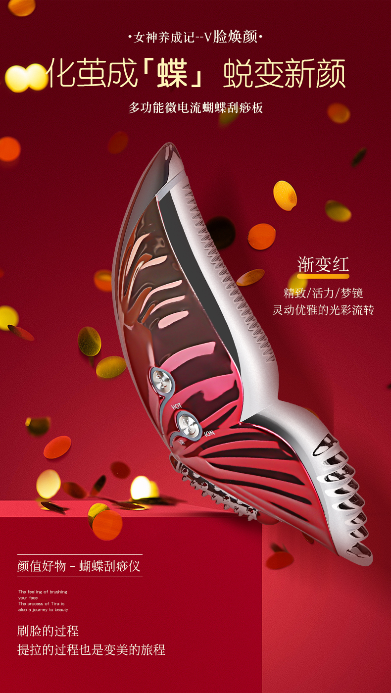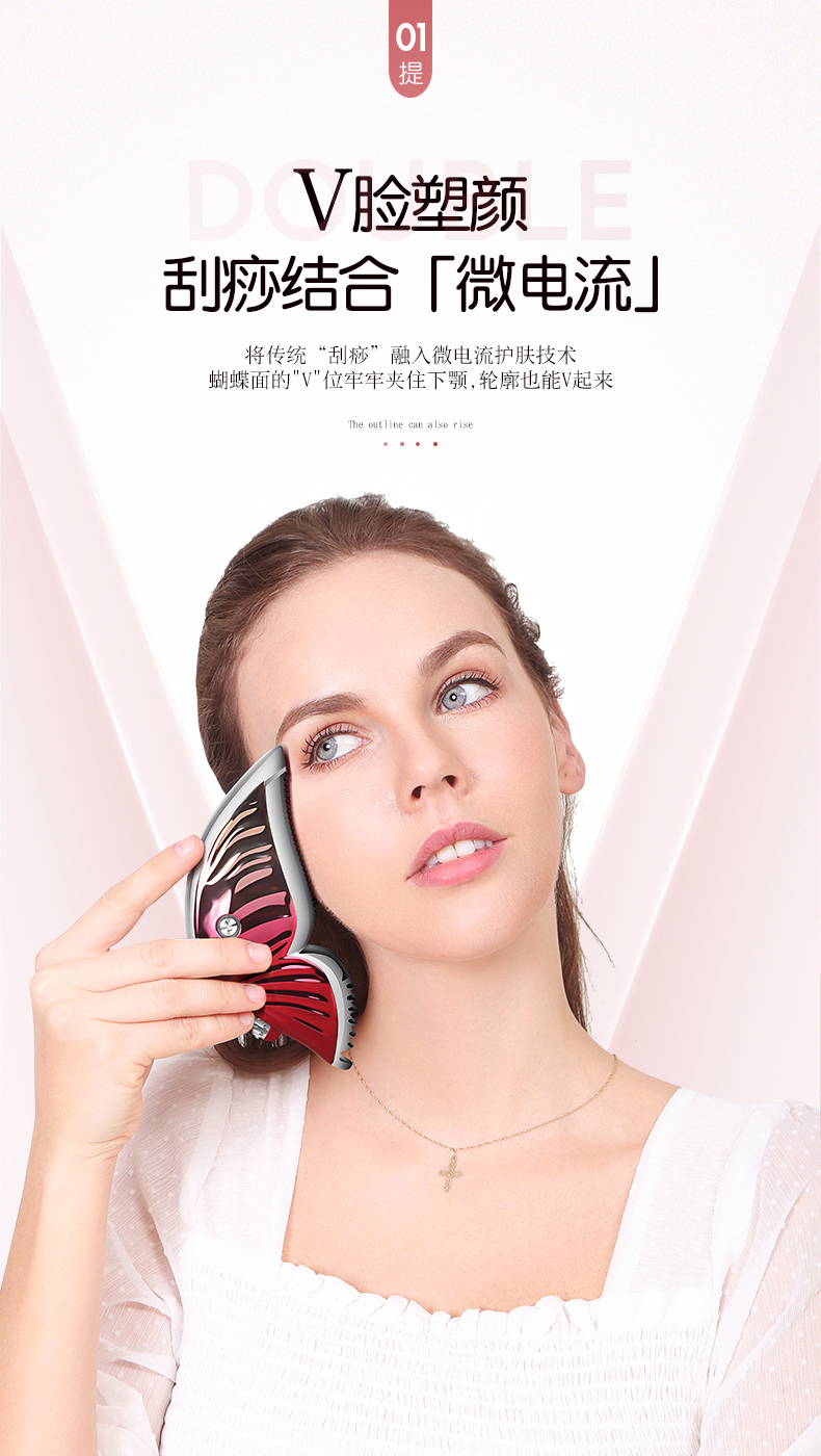 金稻渐变刮痧板 电流导入仪美容仪家用脸部滚轮提拉紧致按摩器