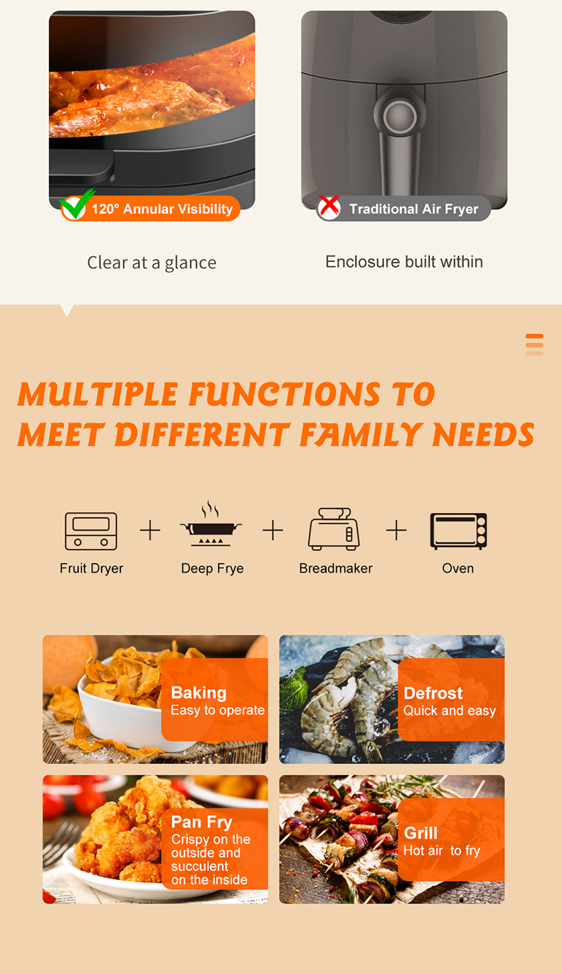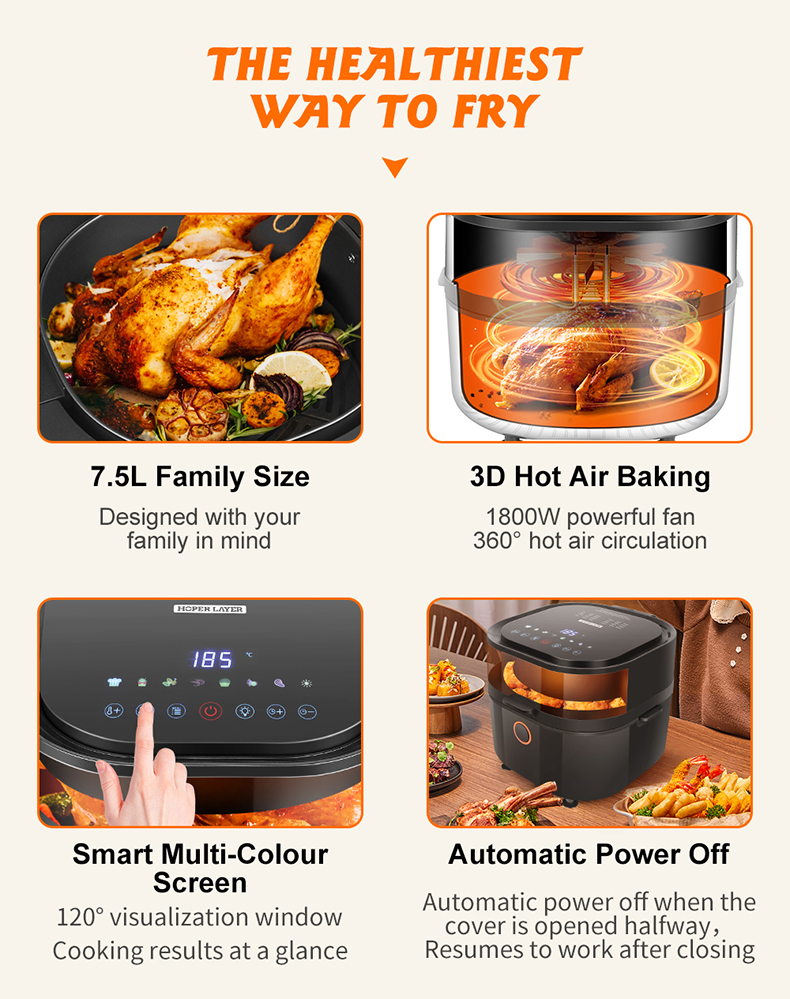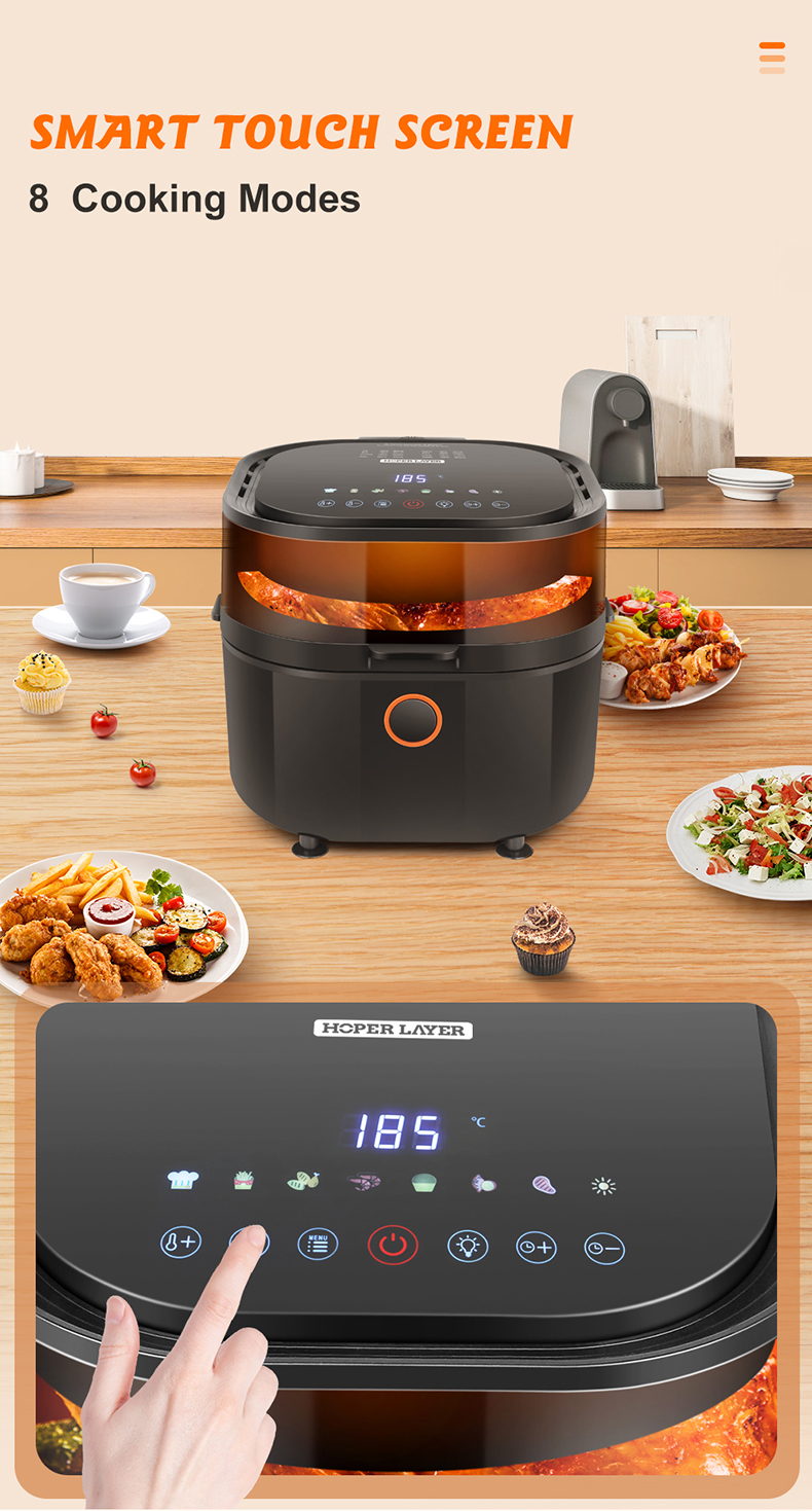 Hoper Layer可视空气炸锅 钢化耐热玻璃多功能触摸屏炸锅7.5L