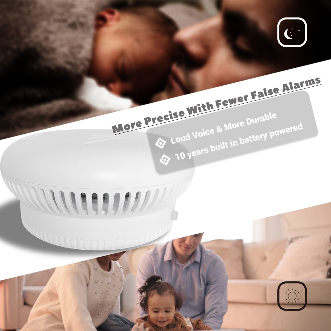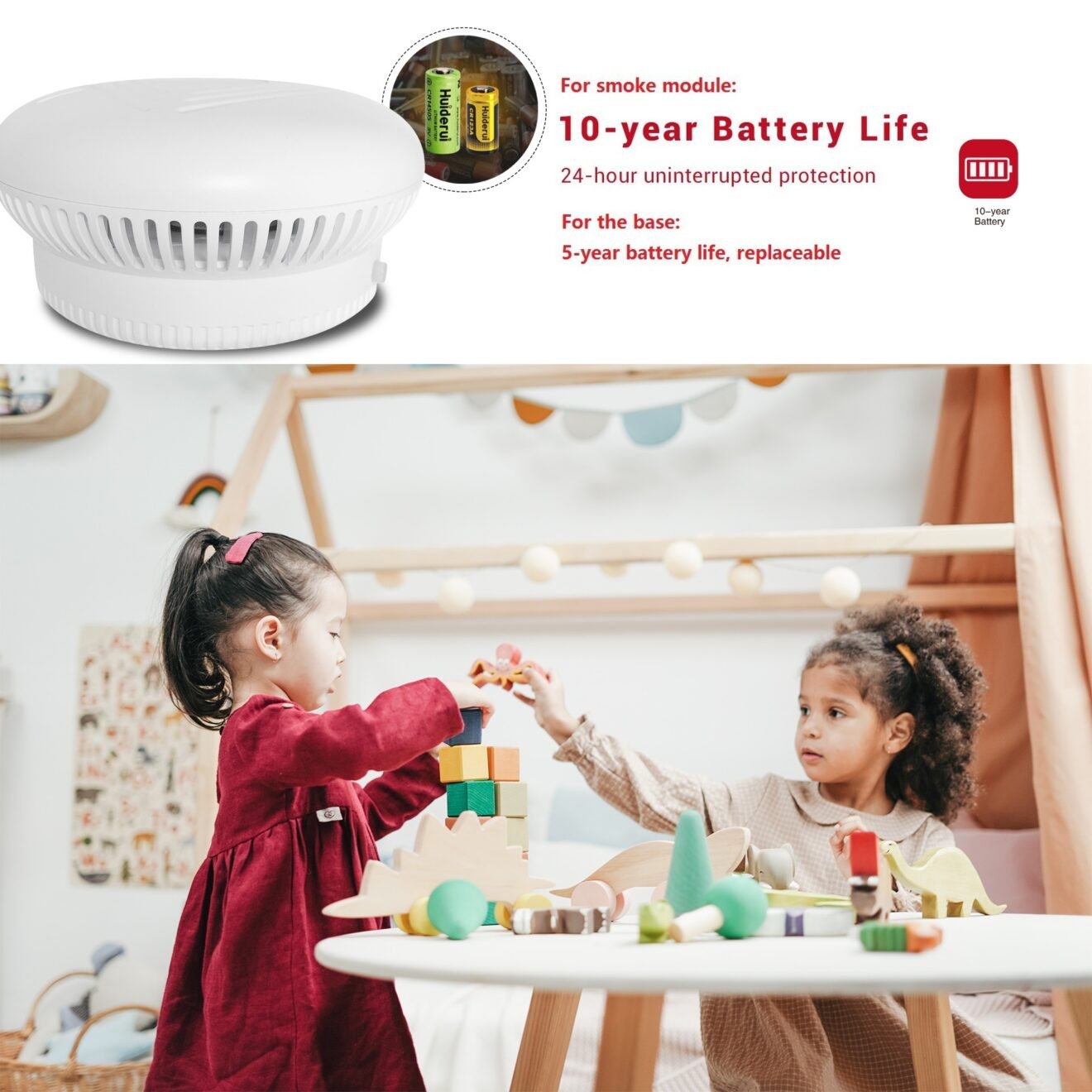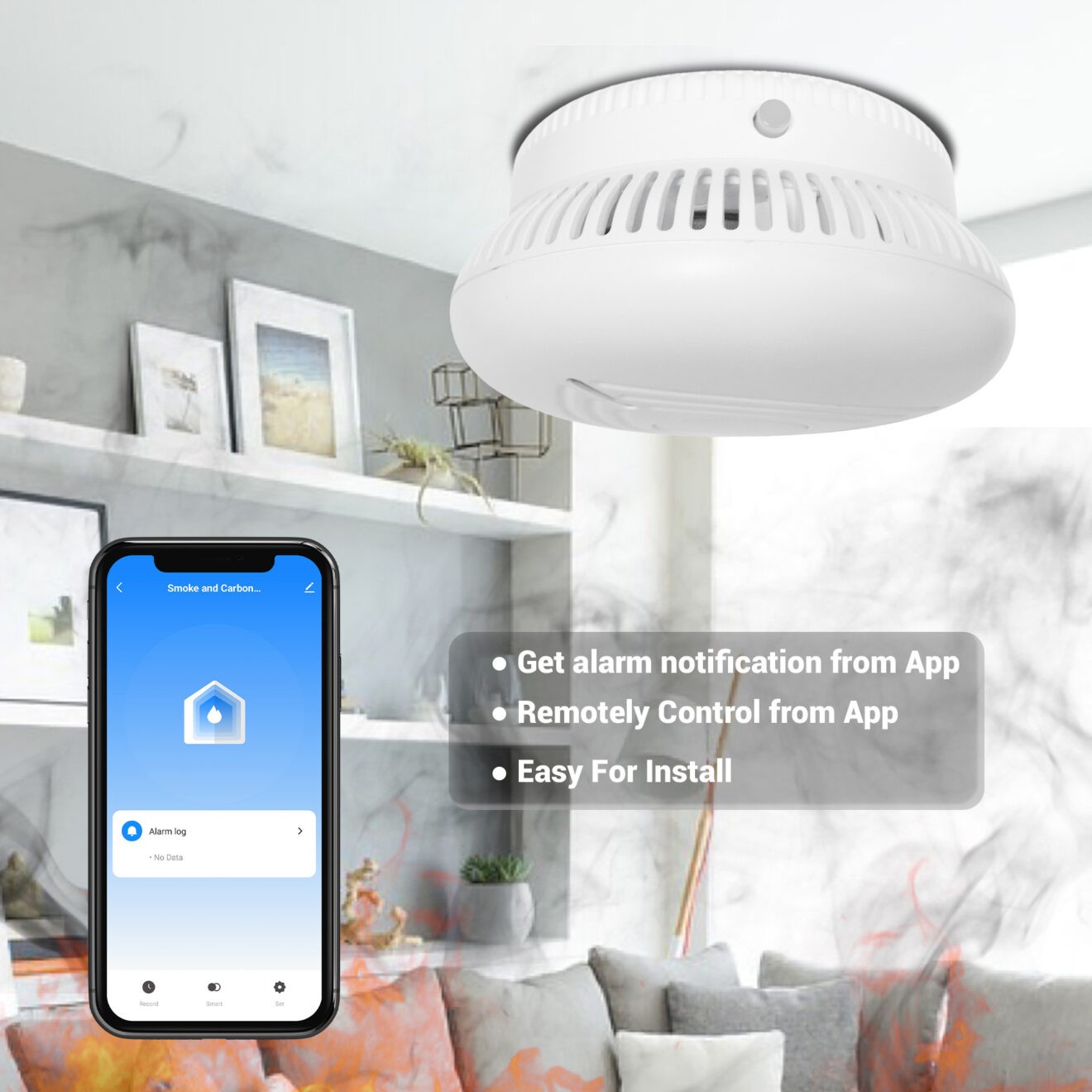 家用燃气互连烟感警报器认证烟雾火灾探测器内置锂电池