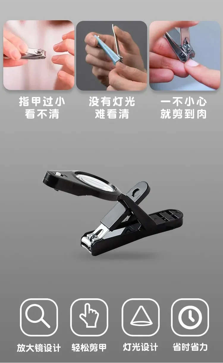 大号设计和放大功能,更适合家庭使用,让您能够准确地修剪指甲,确保指甲修剪更加安全和方便。
