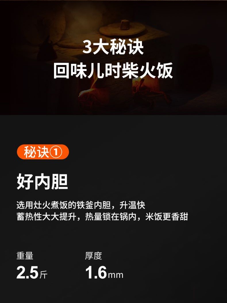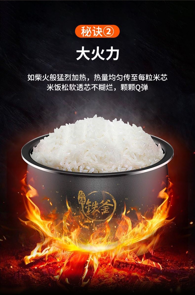 (赠送不锈钢蒸屉)智能电饭煲 土灶铁斧 4L容量 24小时预约 1200W火力 蒸屉 低糖米饭;