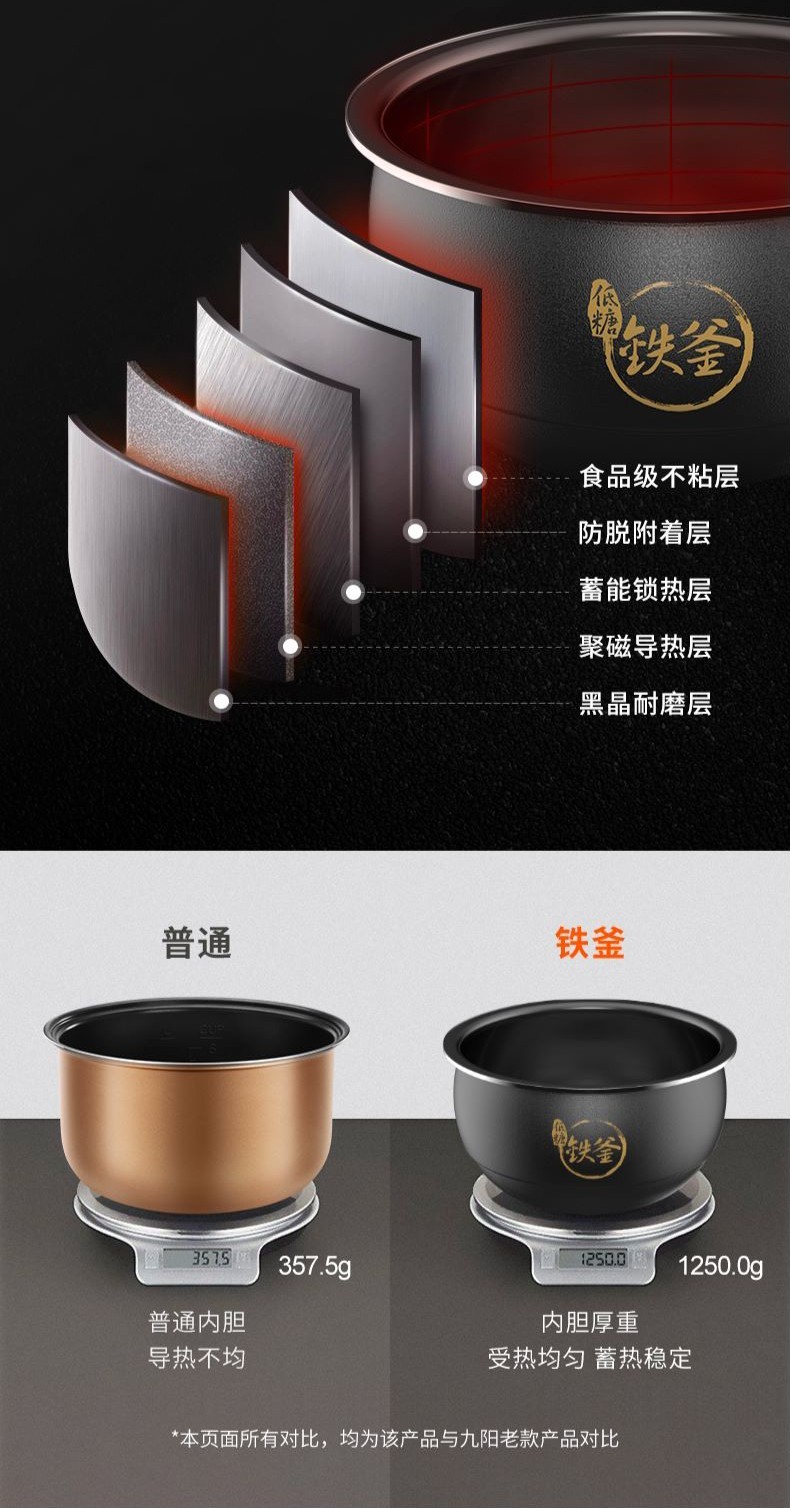 九阳低糖电饭煲 智能家用电饭锅煮饭锅智能预约多功能大功率4L铁釜内胆