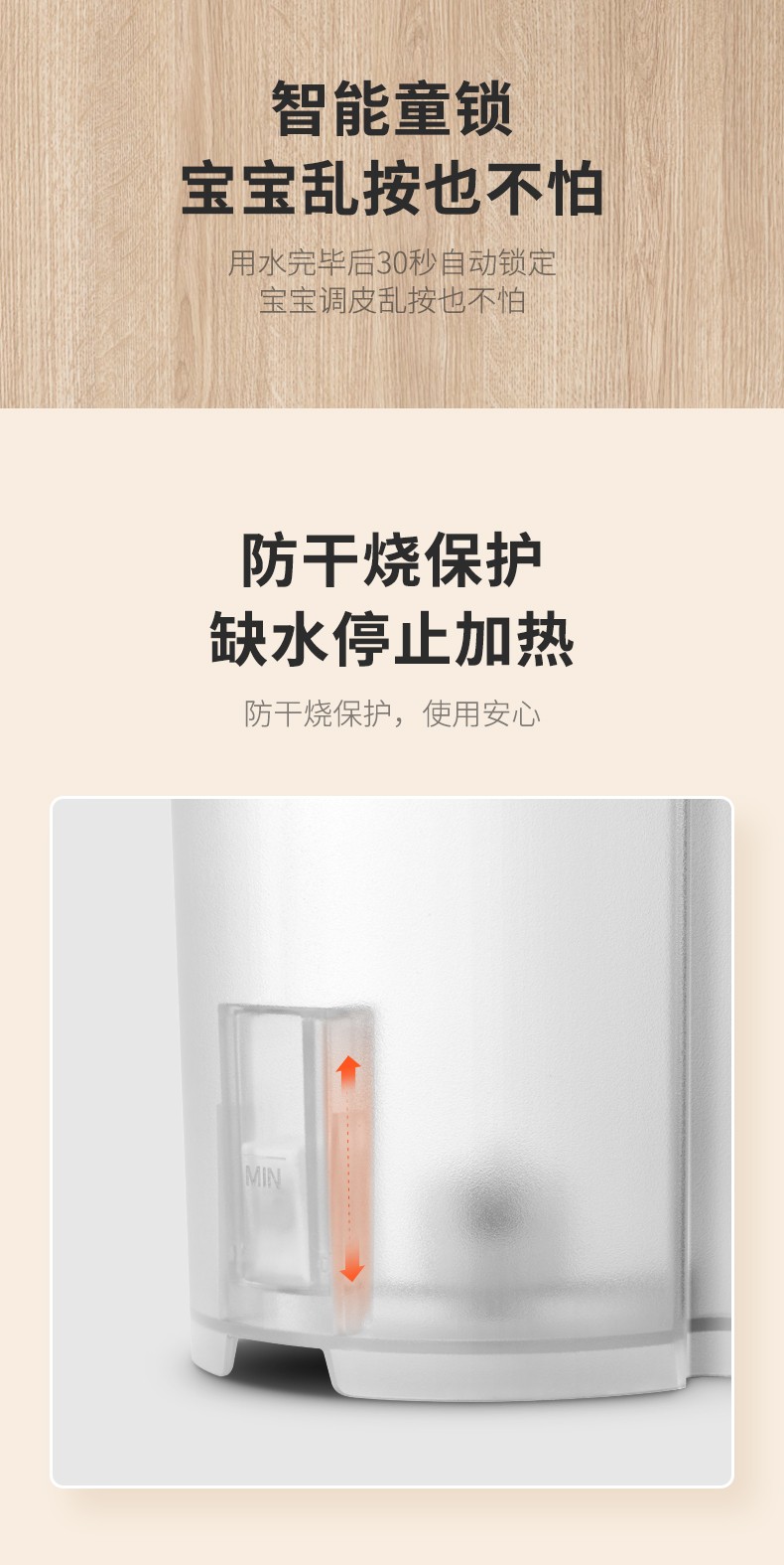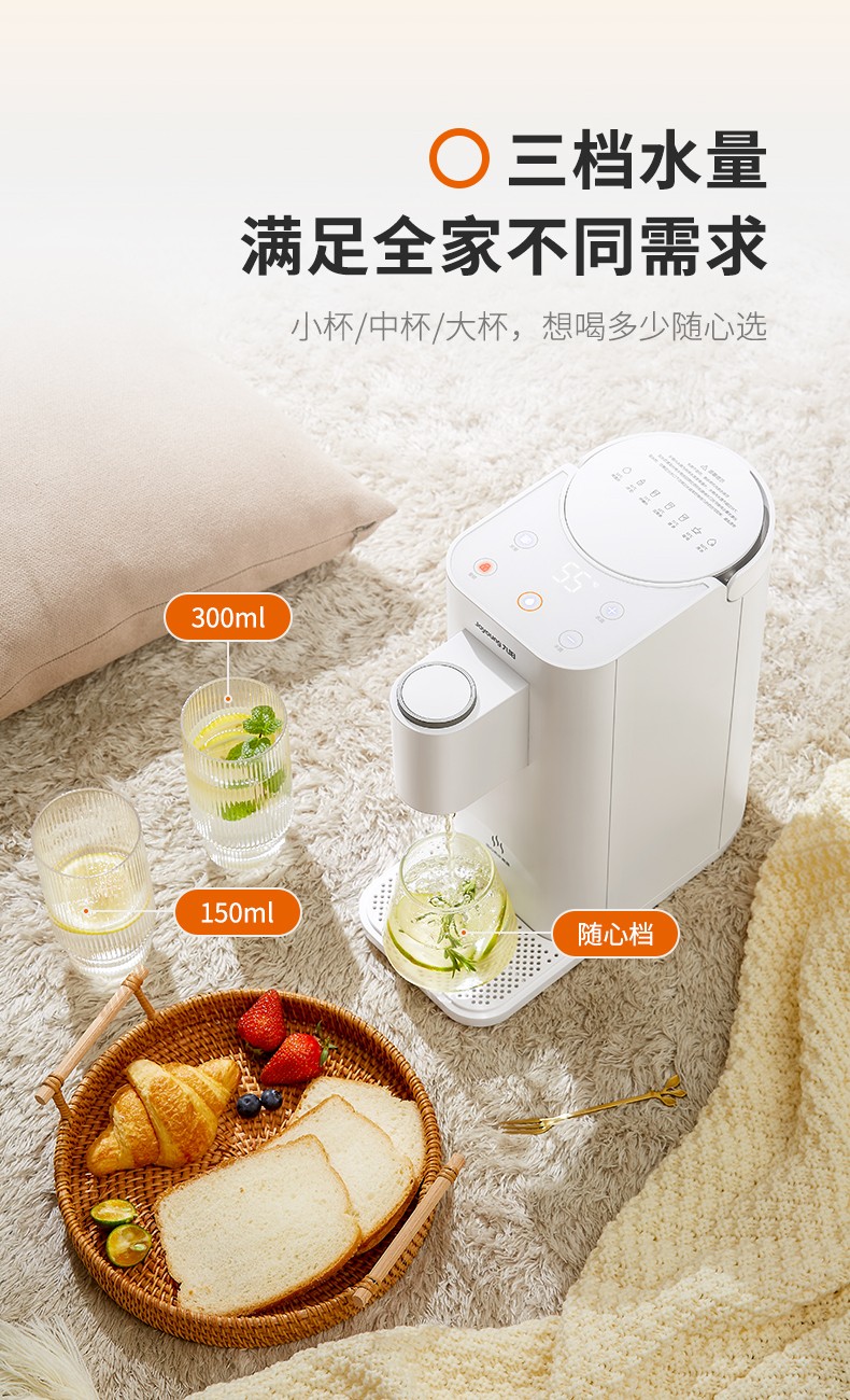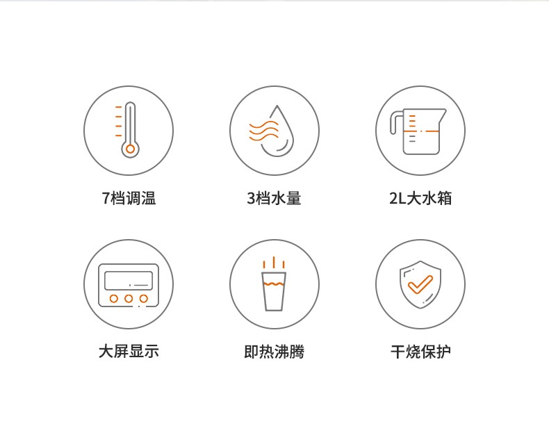 7档调温 超大容量 即热沸腾 干烧保护 温热冲泡 智能童锁
