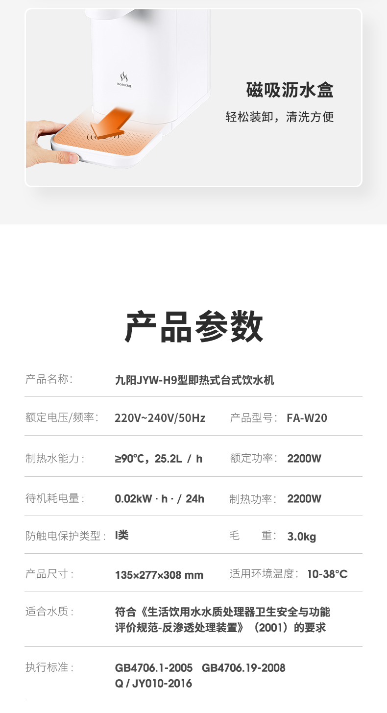 九阳台式即热饮水机小型家用速热迷你桌面全自动智能茶吧机FA-W20