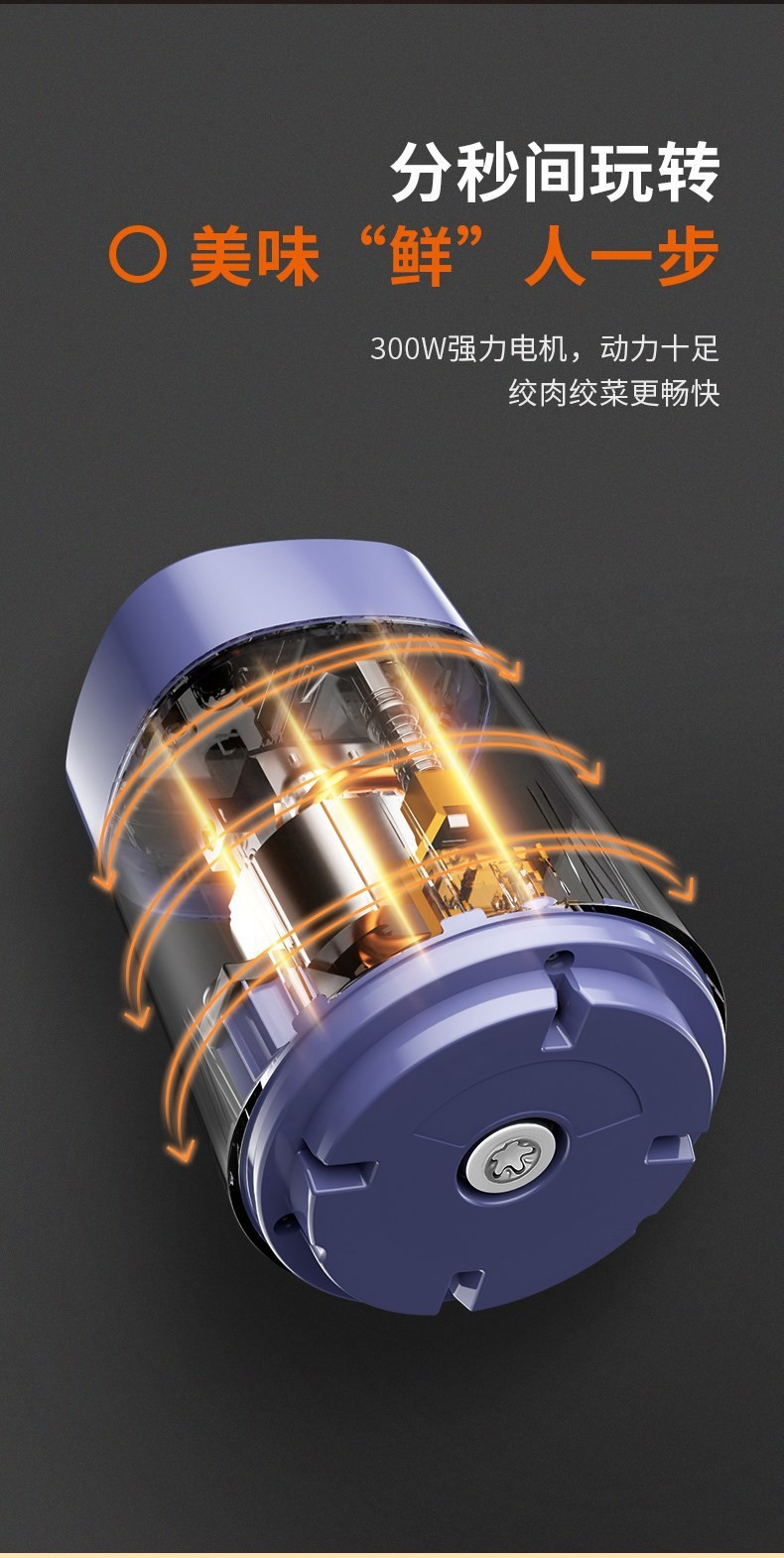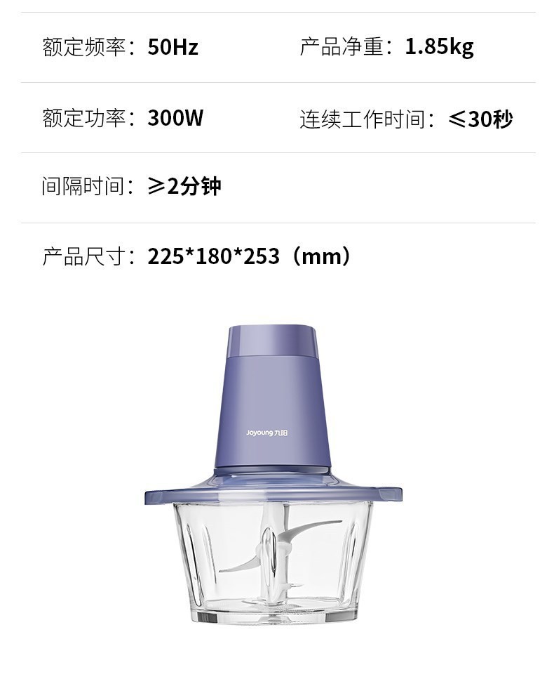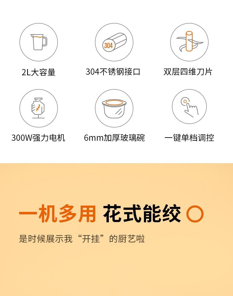 6mm加厚玻璃碗,300W强力电机,一键单档调控;
