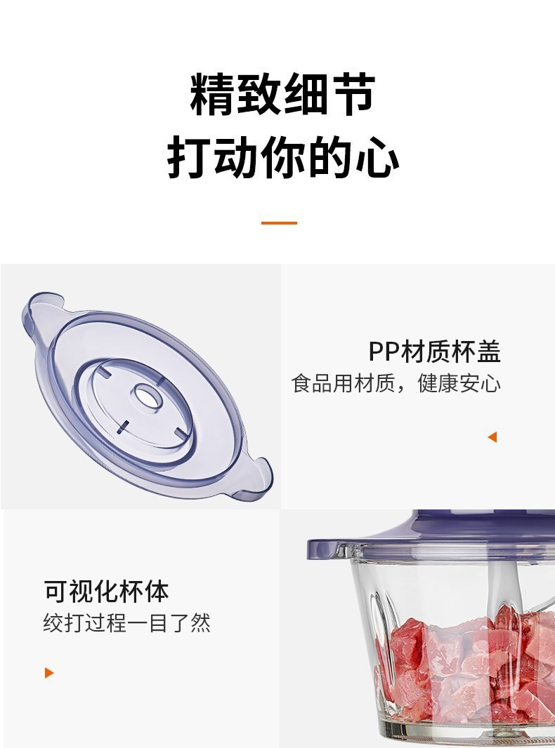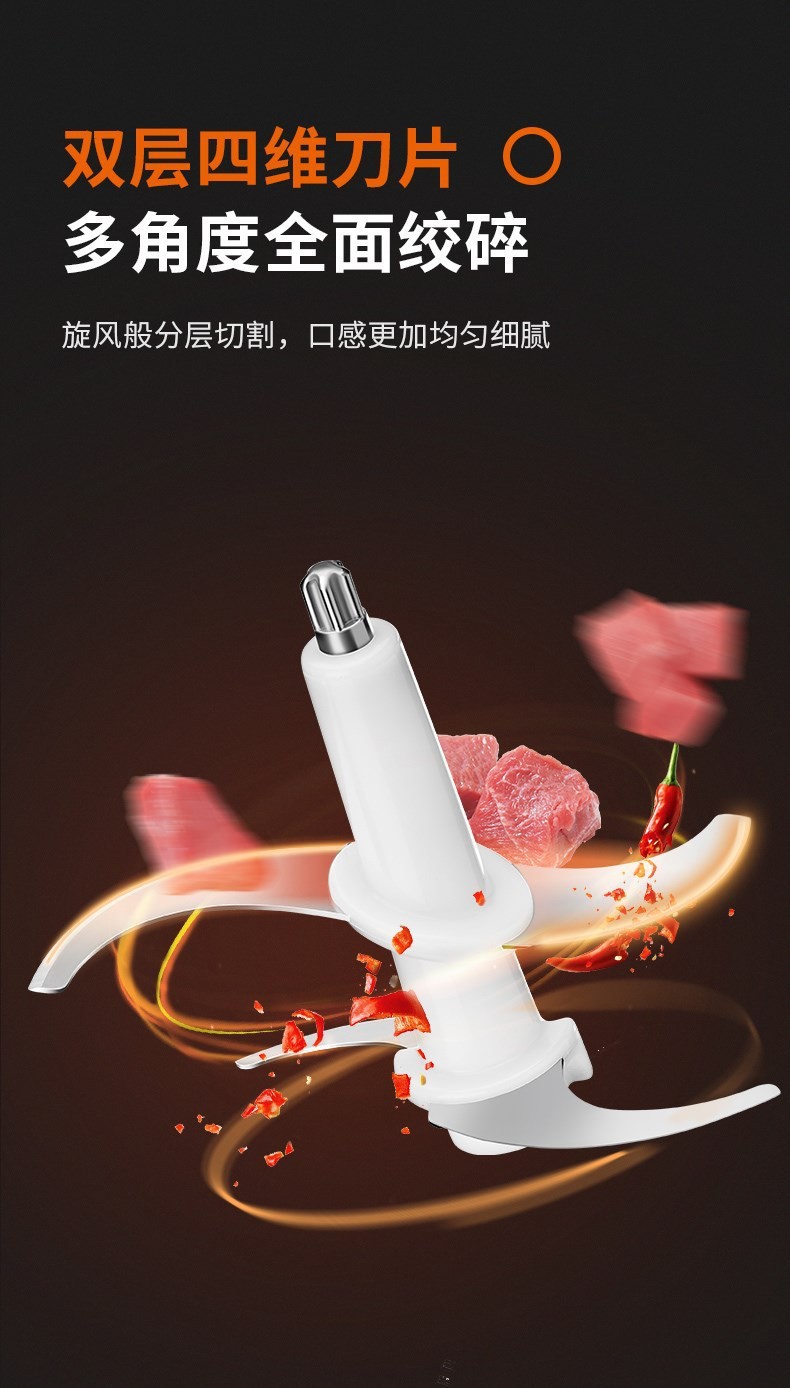 2L大容量,304不锈钢接口,双层四维刀片;