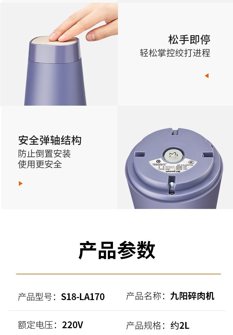 九阳绞肉机 家用电动搅拌机小型绞馅机婴儿辅食机搅菜打碎料理机LA170