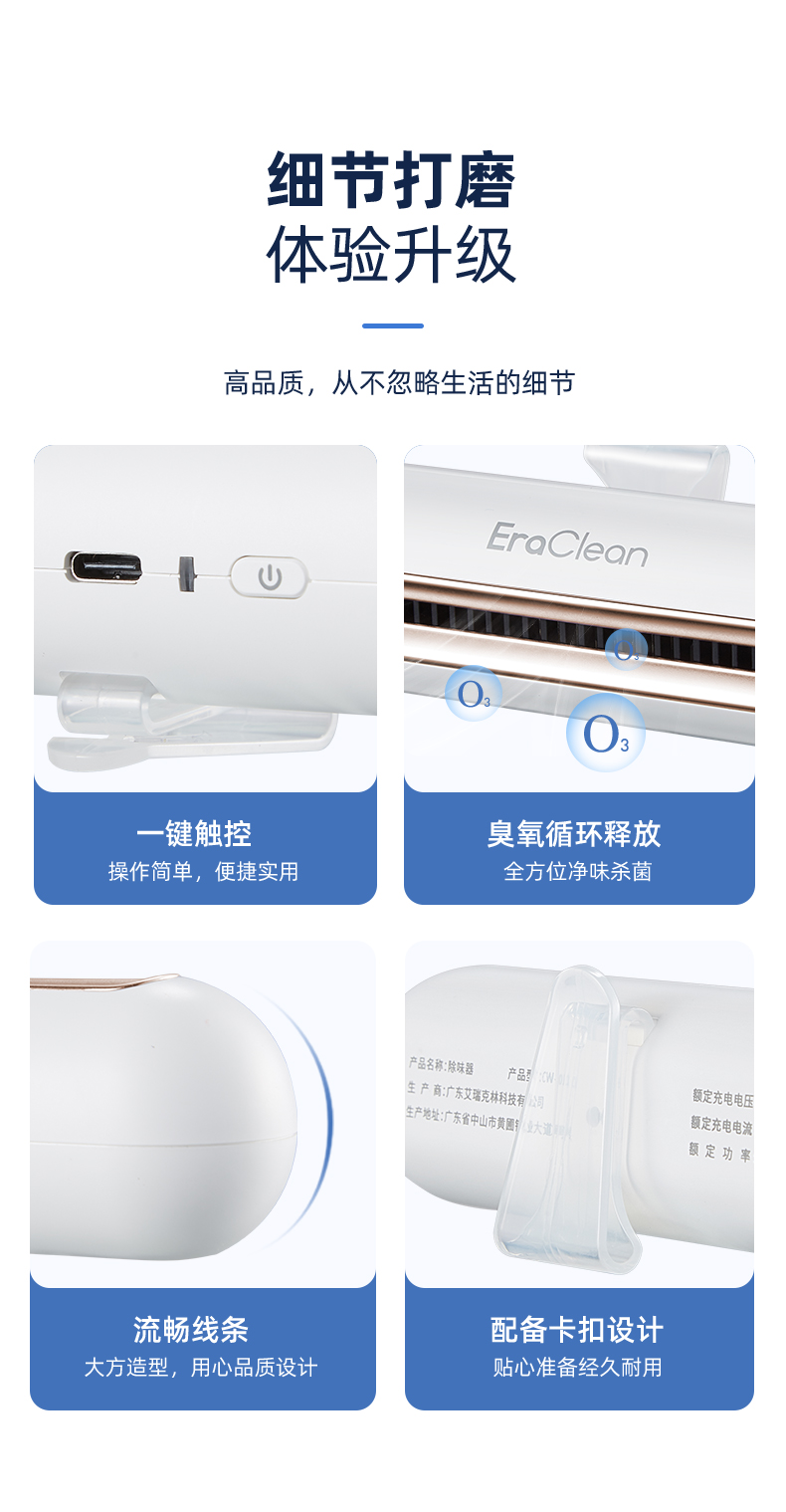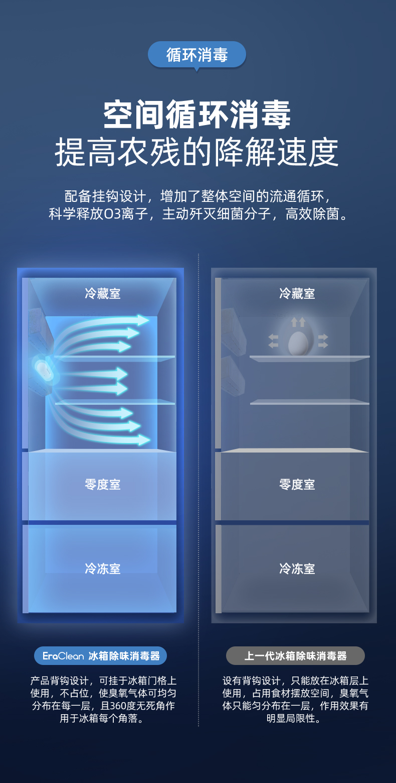 EraClean冰箱除味器 消毒臭氧空气净化器厨房卫生间除臭器消毒机