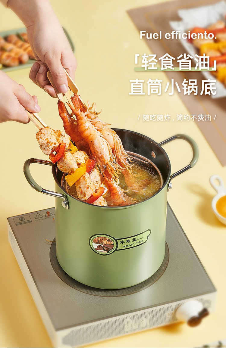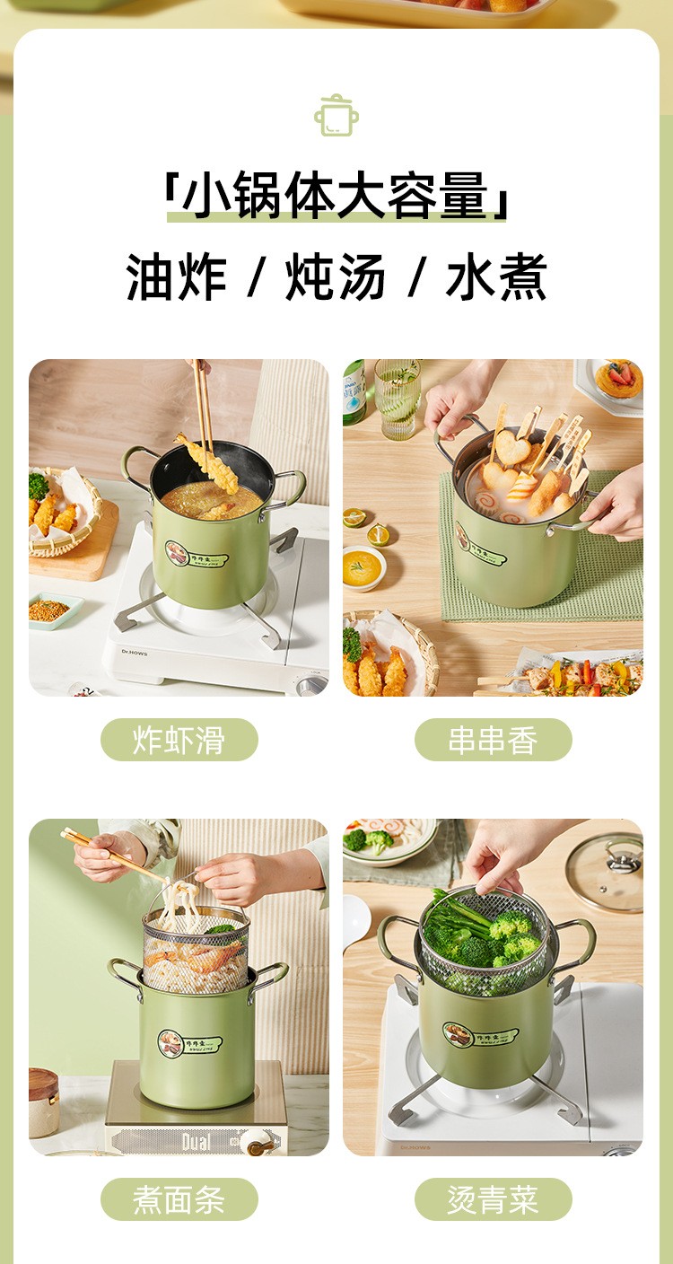 日式捞面锅煮面锅油炸锅不粘炸壶带滤网盖子家用省油迷你小面锅