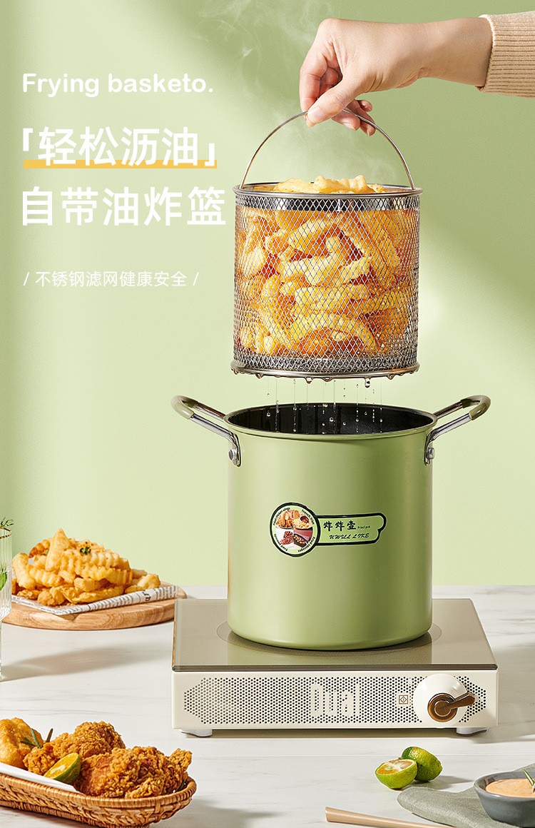 加高省油 多功能油炸锅 带沥油蓝 食品级材质 受热均匀 高效聚能