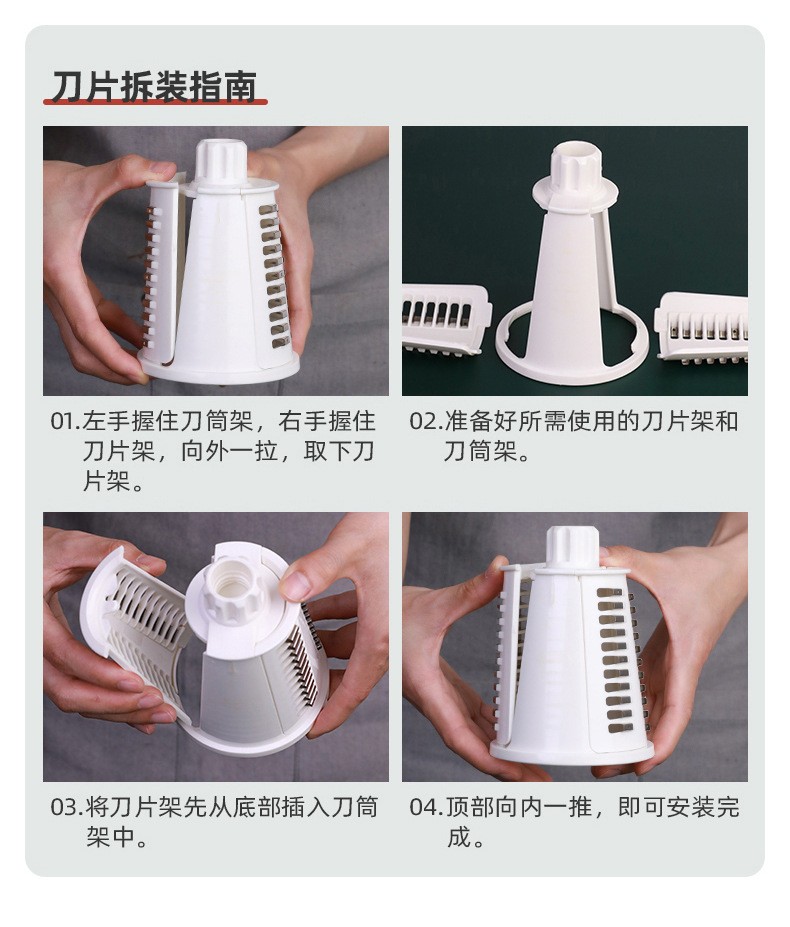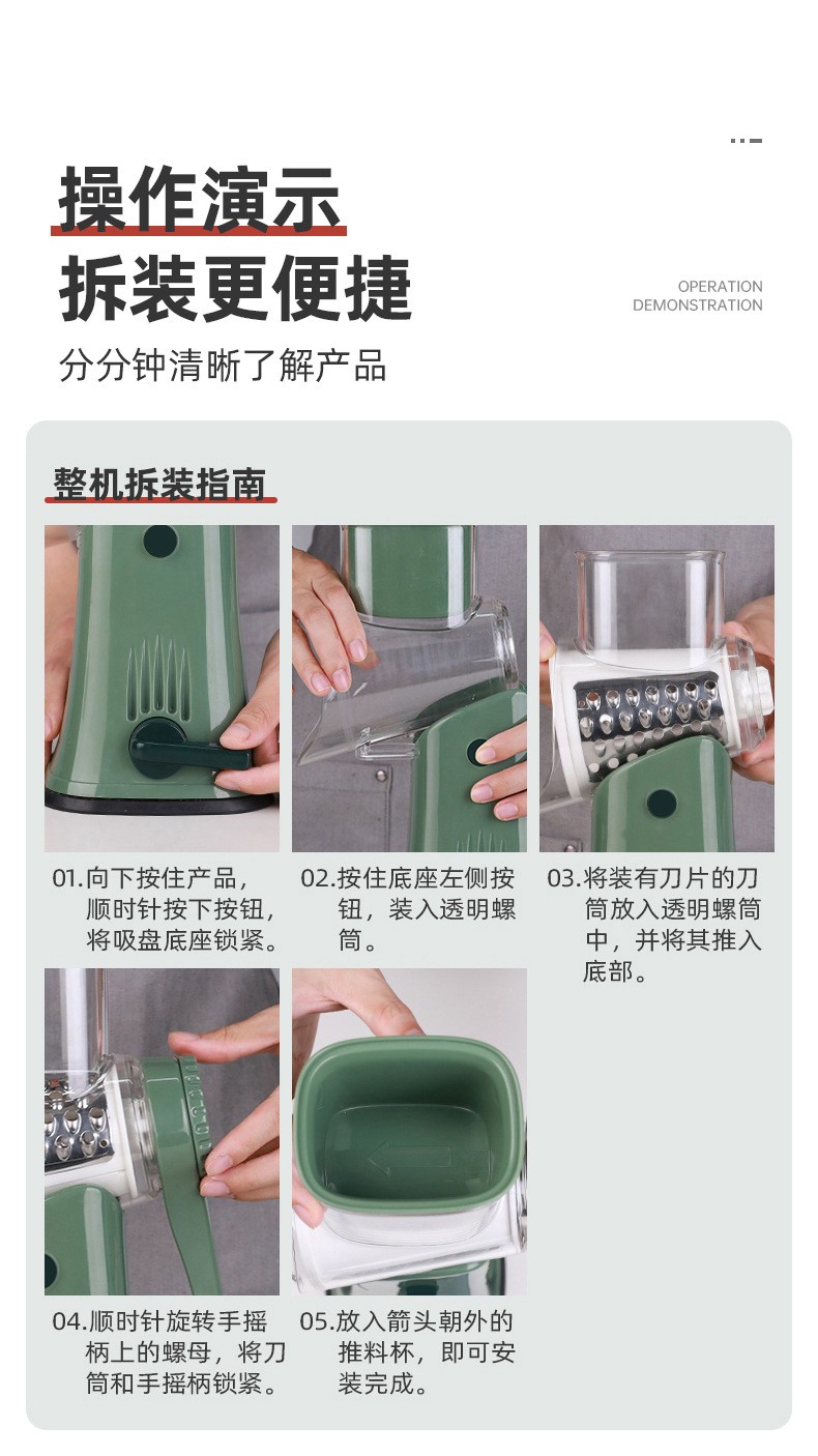 摇几下 轻松切菜 隔离刀锋操作 省力杠杆快速 刀片安全拆洗 全身拆卸可洗
