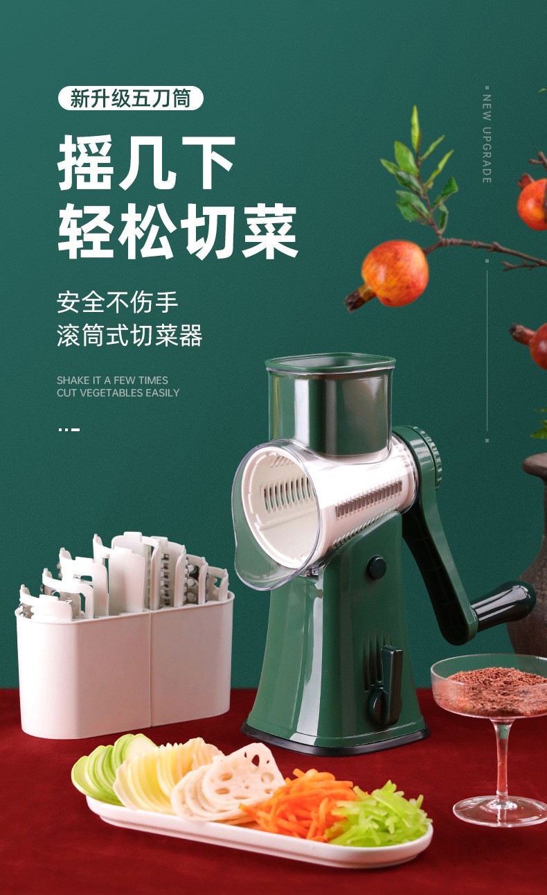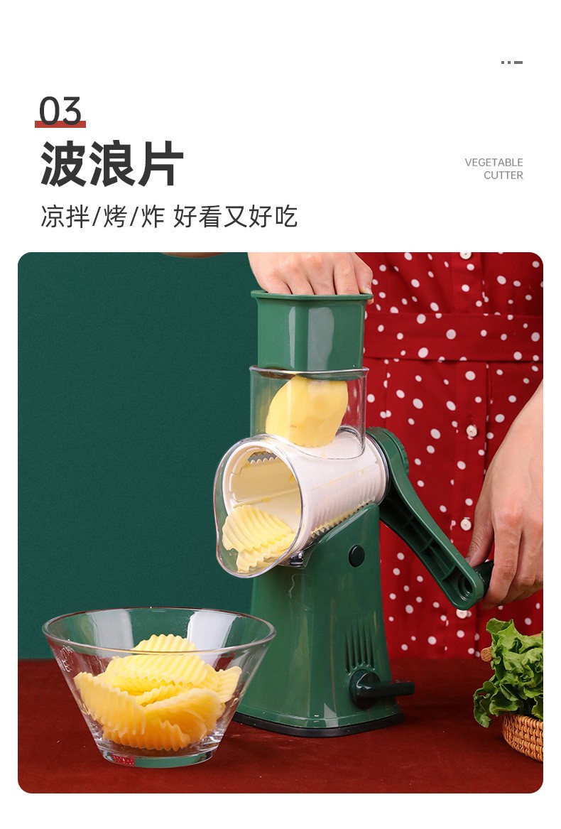 克欧克多功能切菜神器手摇滚筒厨房工具土豆丝切波浪片切片擦丝器