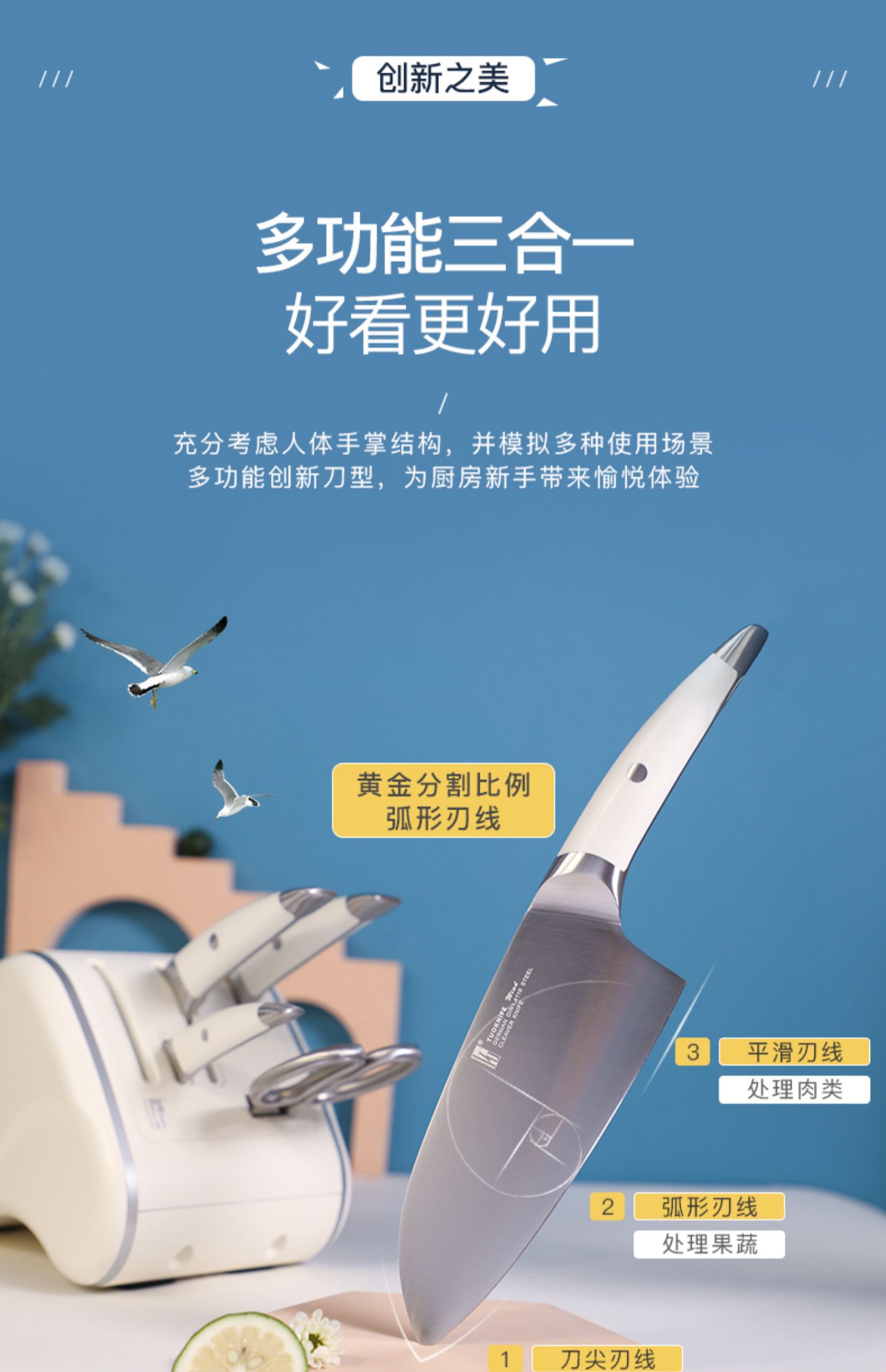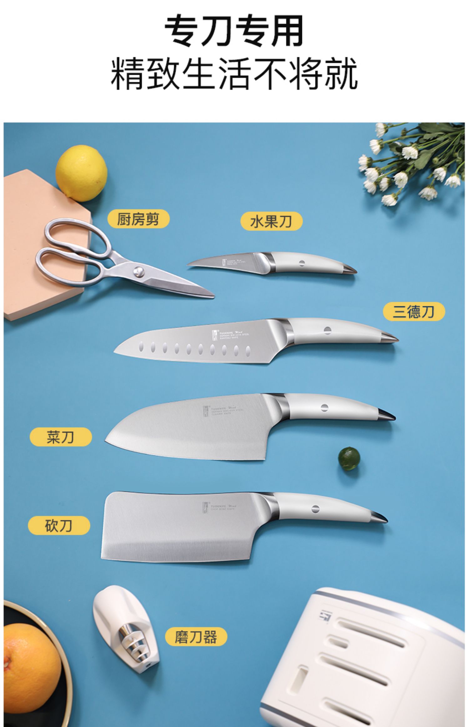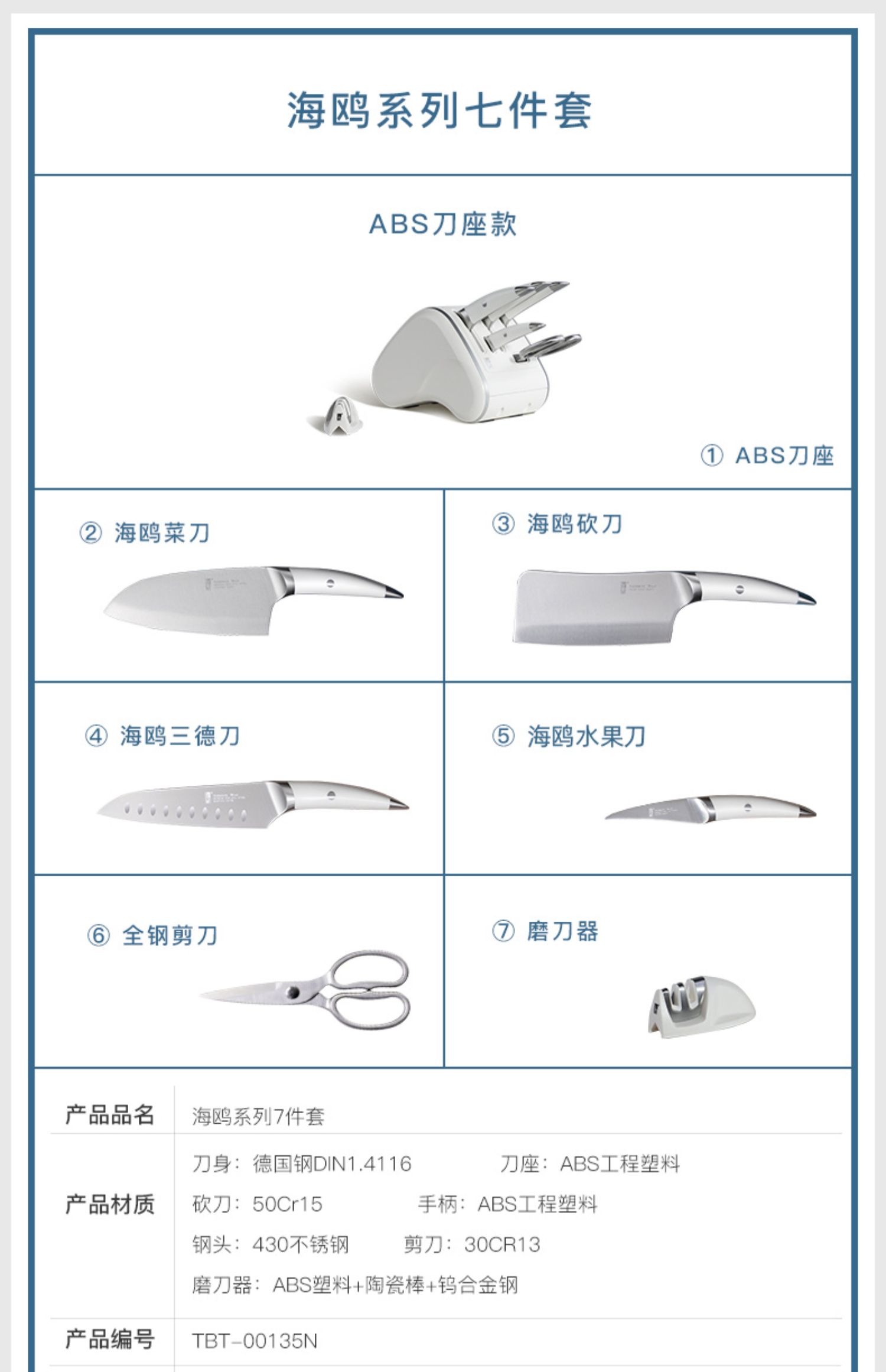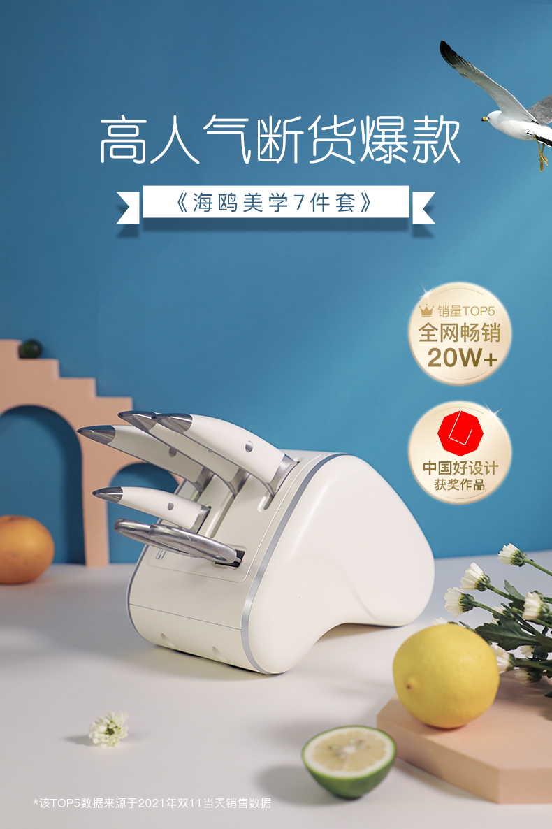 德国进口拓牌菜刀套装 家用厨师专用切菜刀切肉刀刀架 海鸥系列七件套