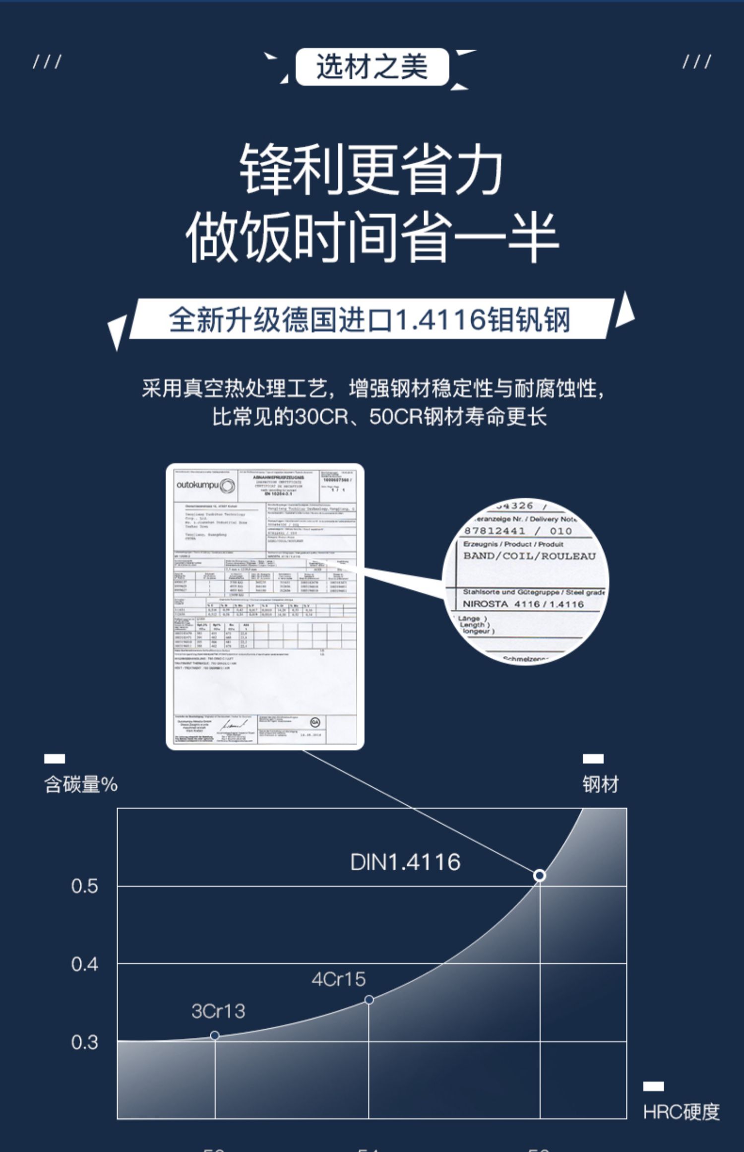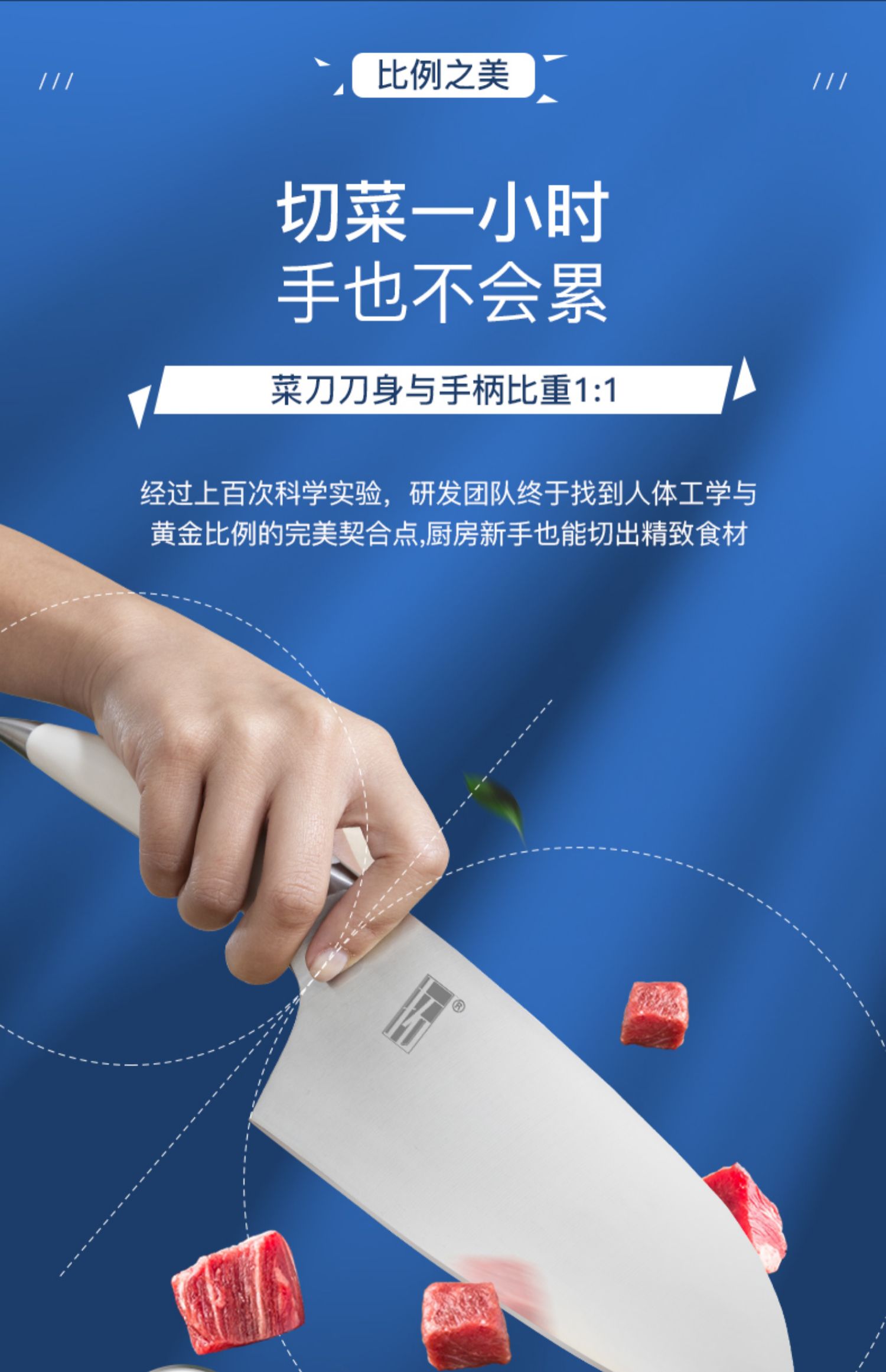 菜刀刀身与手柄比重1:1,切菜一小时手也不会累