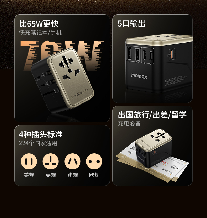 Momax摩米士 出国万能插座 全球通用 英/美/德/澳/欧