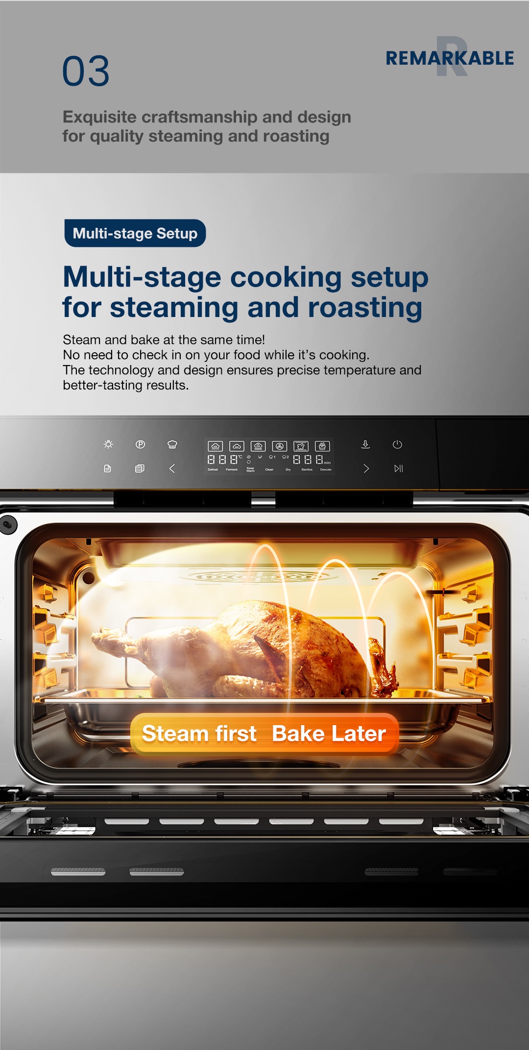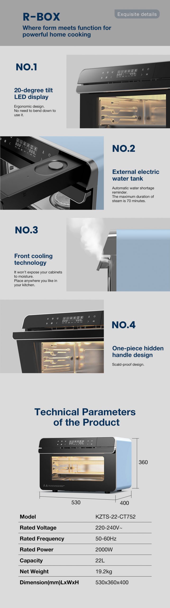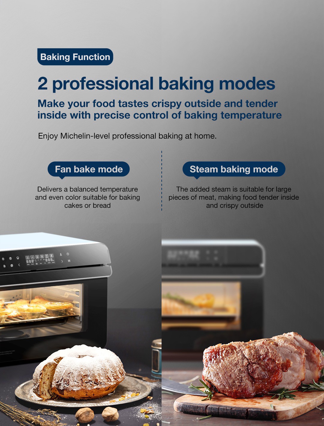 ● 2 professional baking modes: Fan bake and steam baking