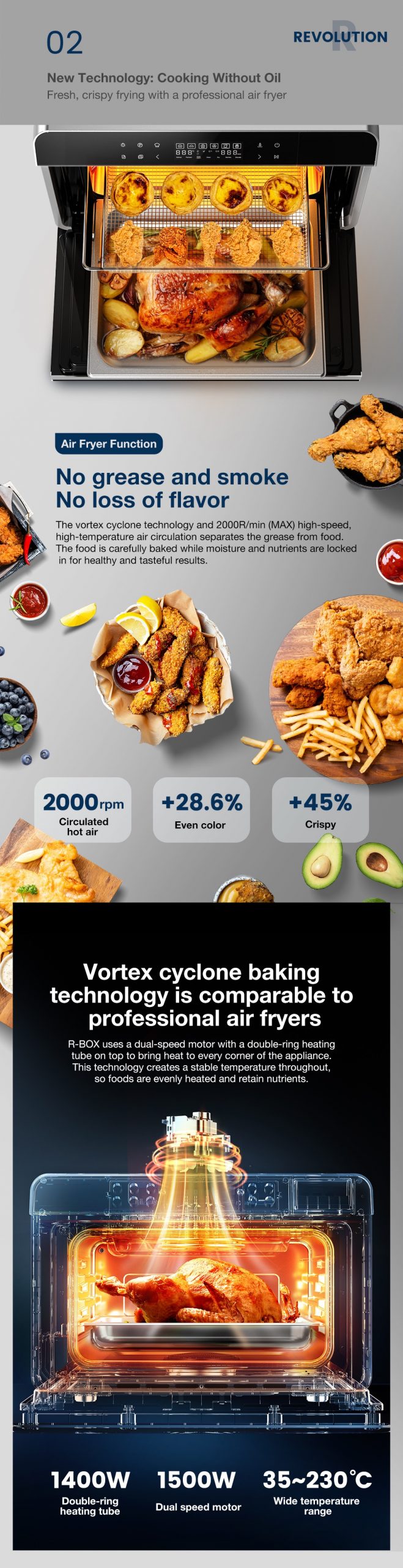 ● Air fryer fuction,no grease and smoke,no loss of flavor