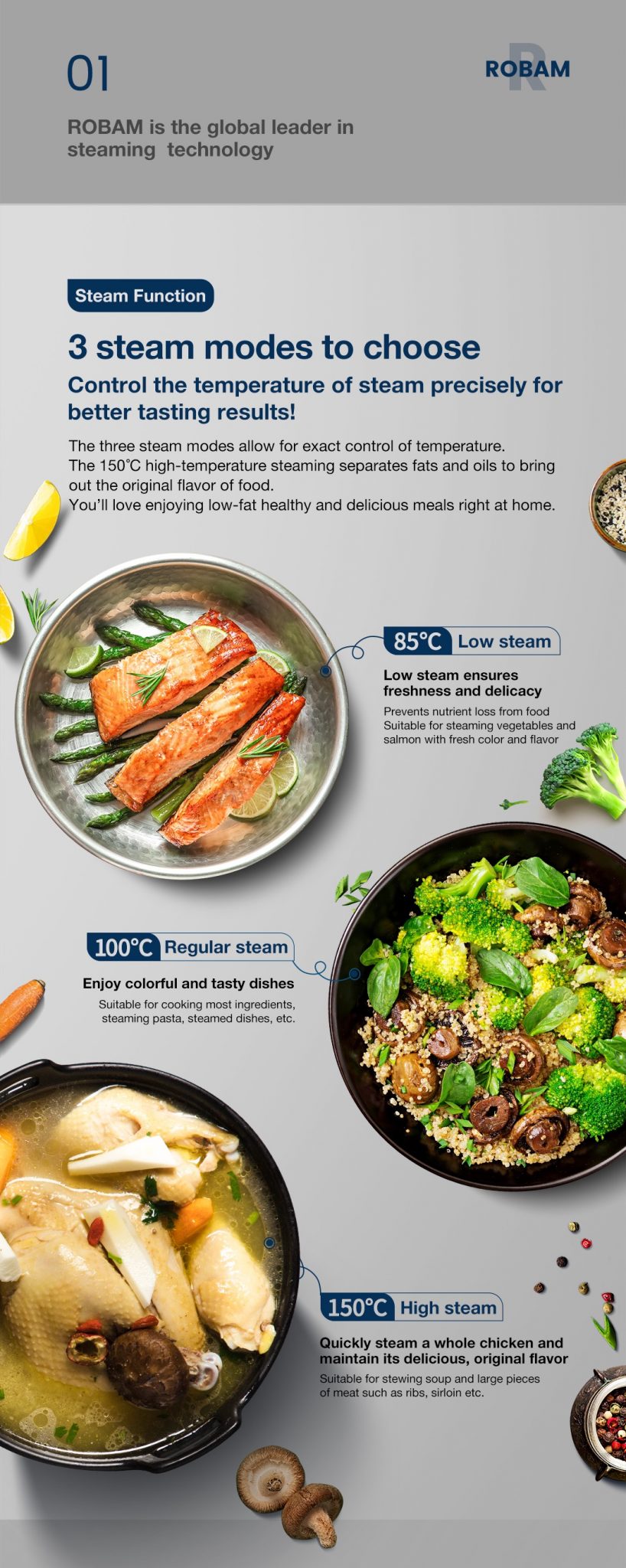 ● 3 steam modes :85℃~95℃,30℃~100℃,101℃~150℃