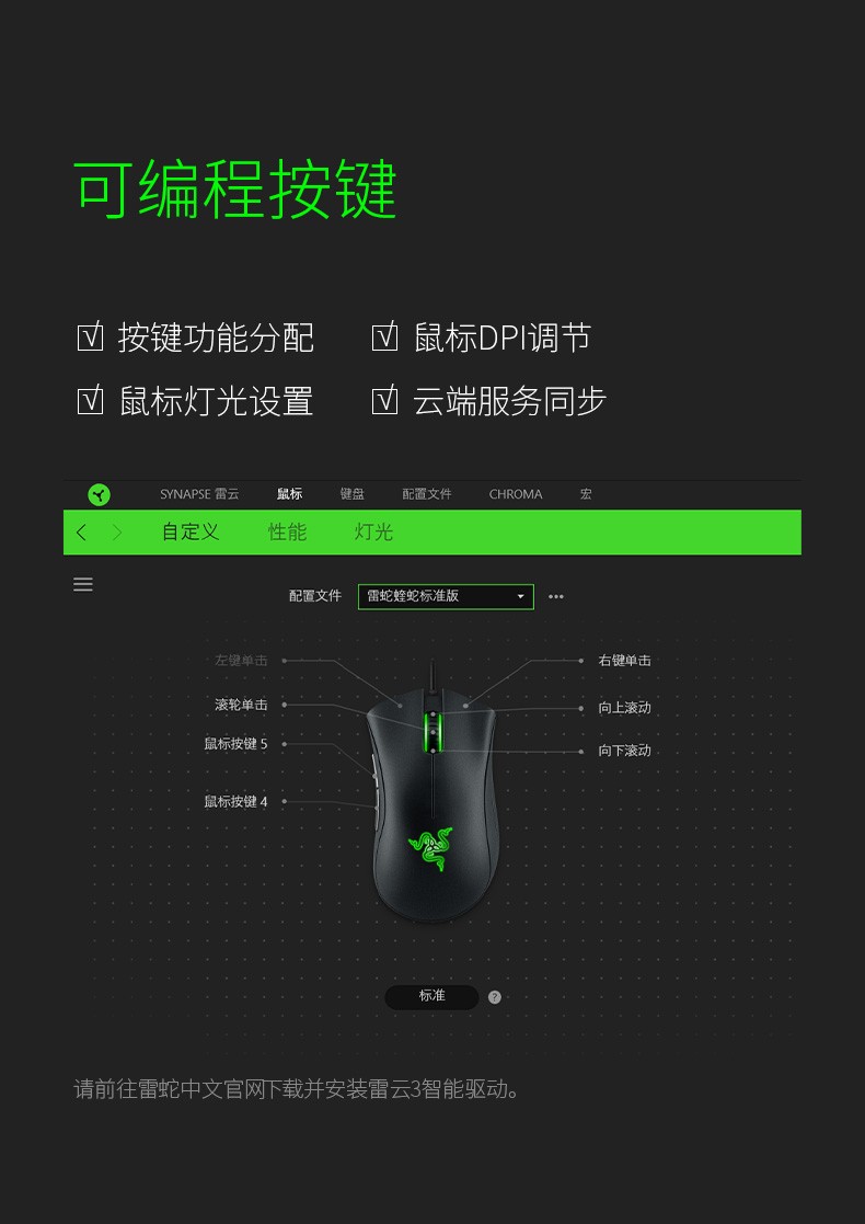Razer雷蛇蝰蛇标准版黑白色电竞游戏笔记本电脑机械鼠标
