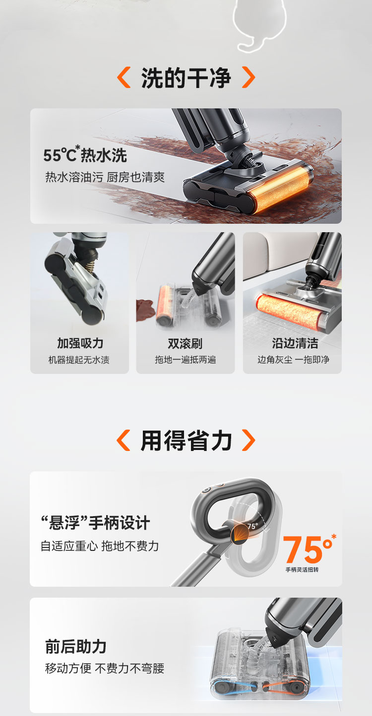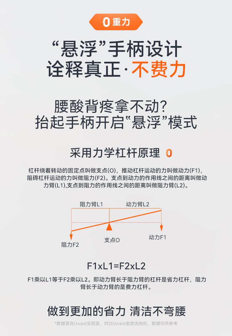 75℃悬浮手柄不弯腰,前后助力自适应重力;