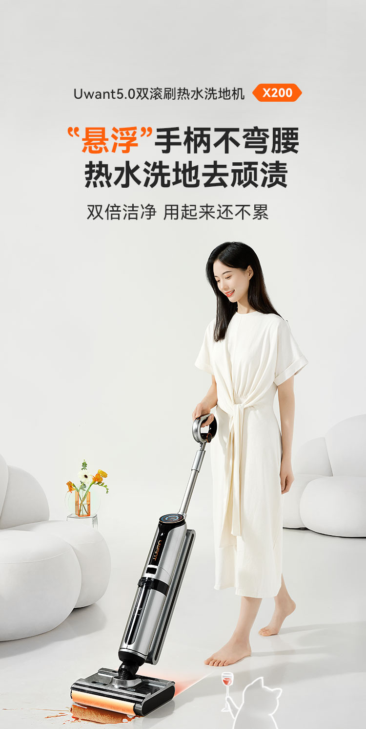 Uwant友望无线智能热水洗地机吸拖一体全自动拖地机吸尘器家用悬浮助力延边清洁X200 【热水洗地】