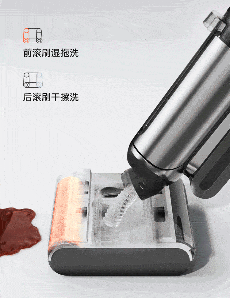 双滚刷,前滚刷吸拖,后滚刷擦洗;