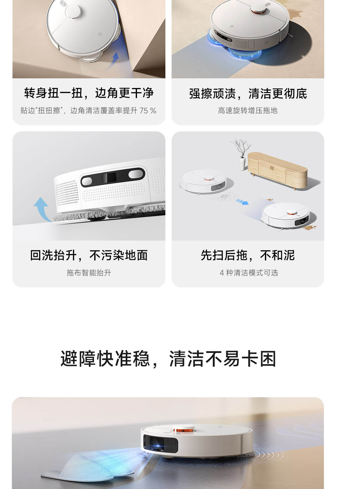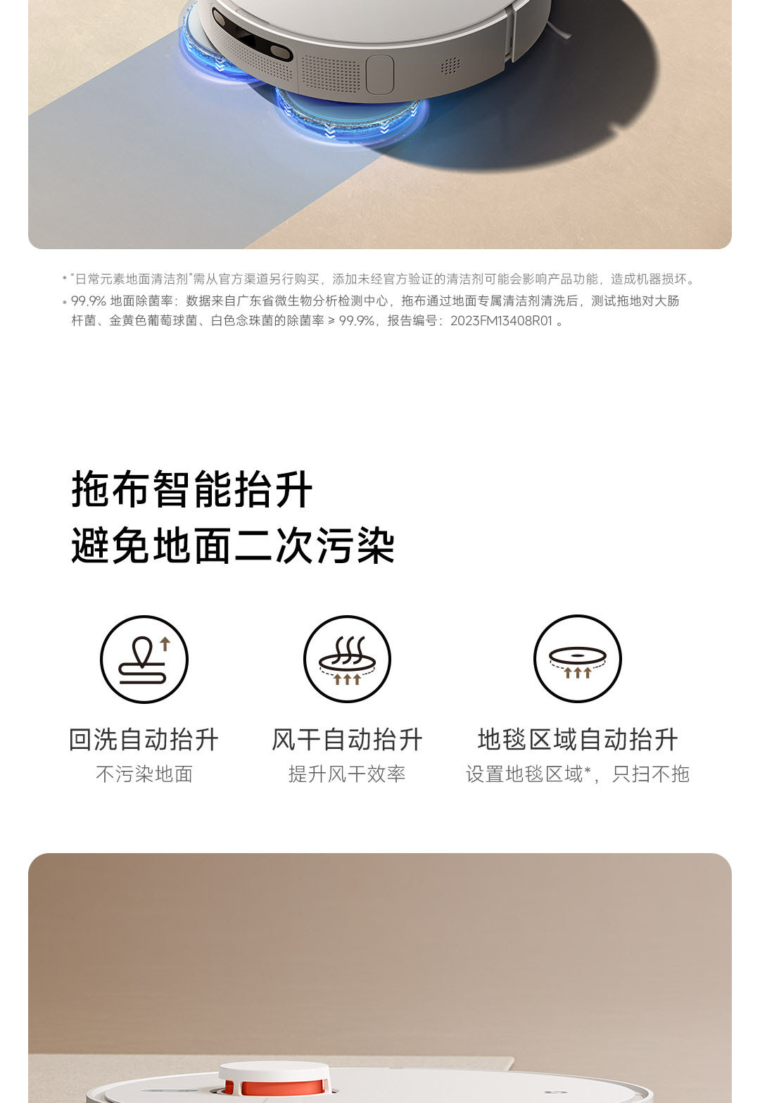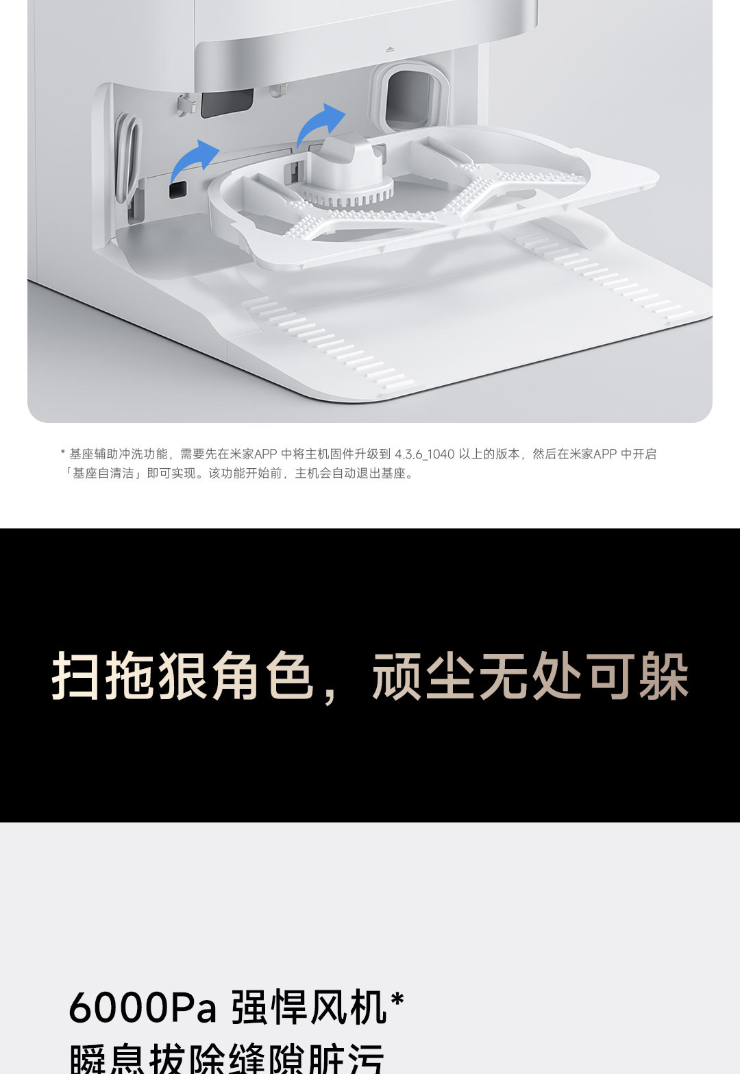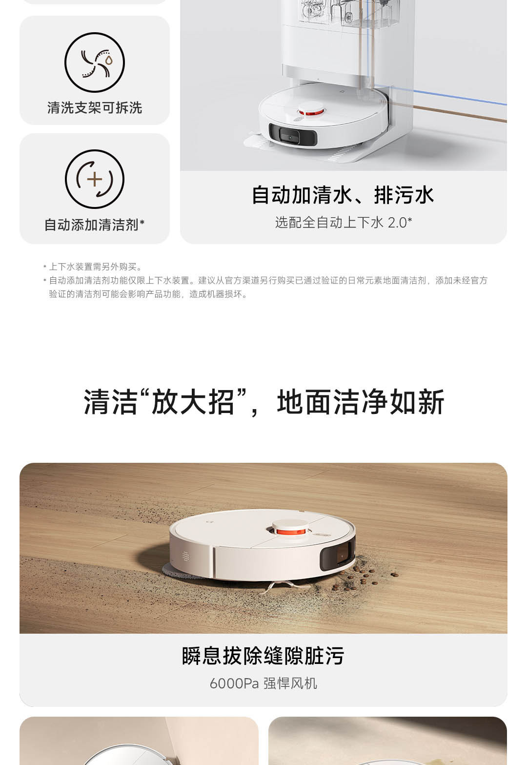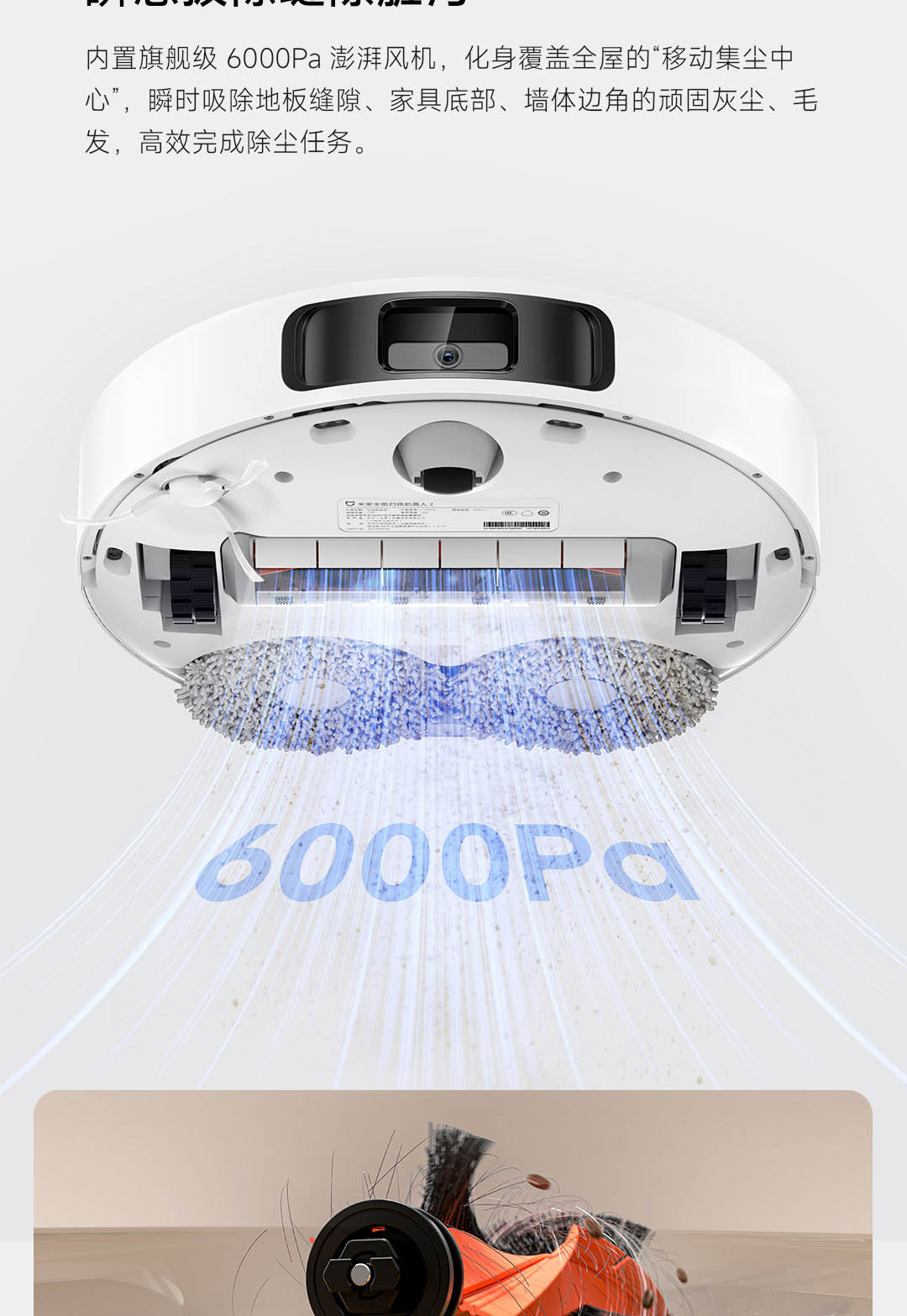6000Pa强力风机,拖布智能抬升;