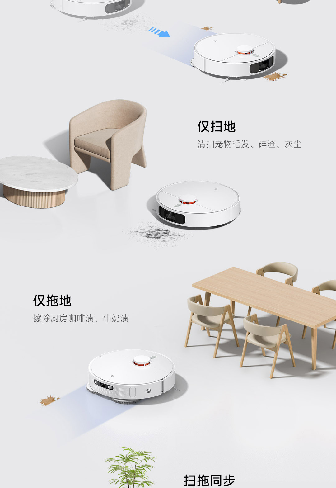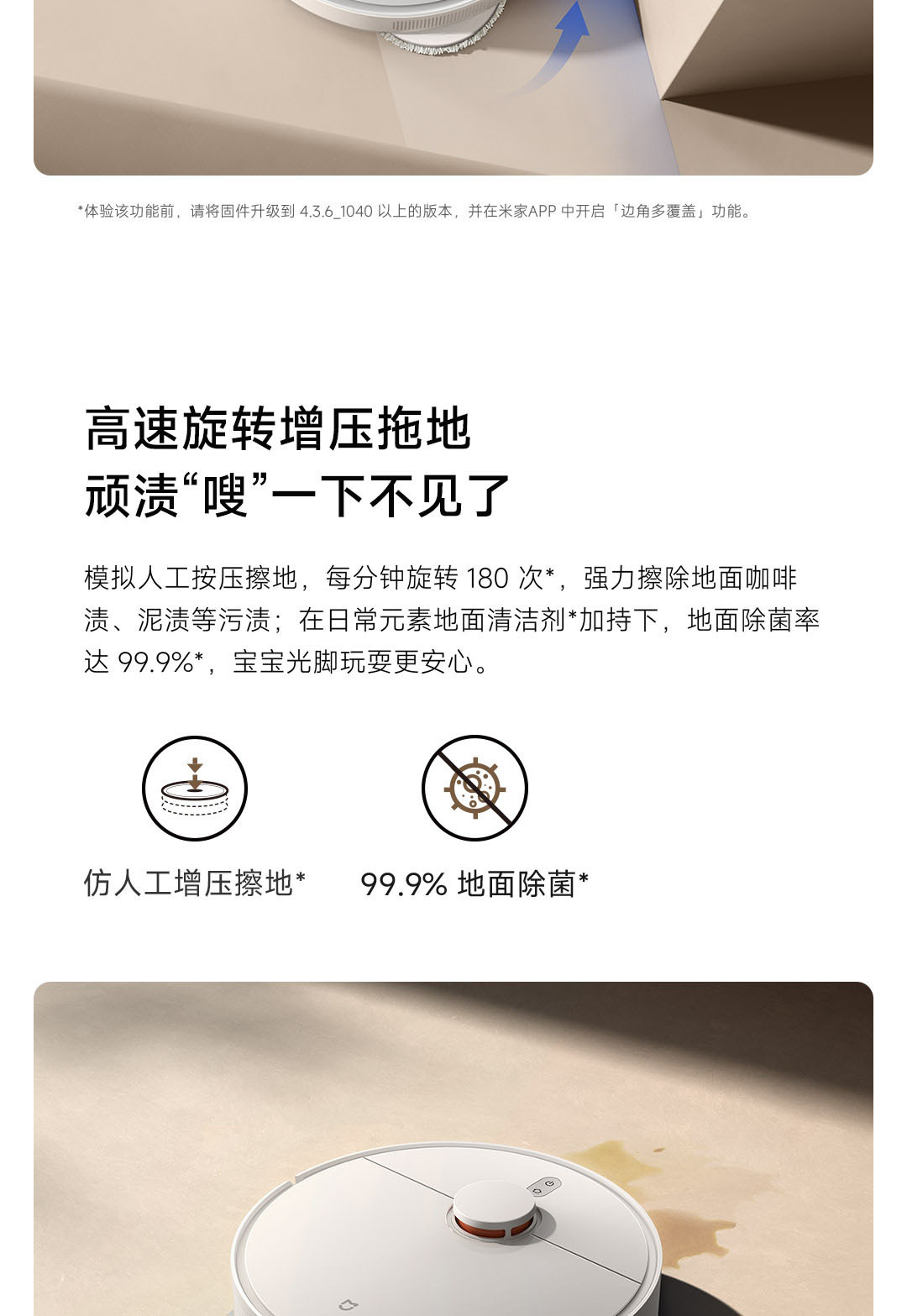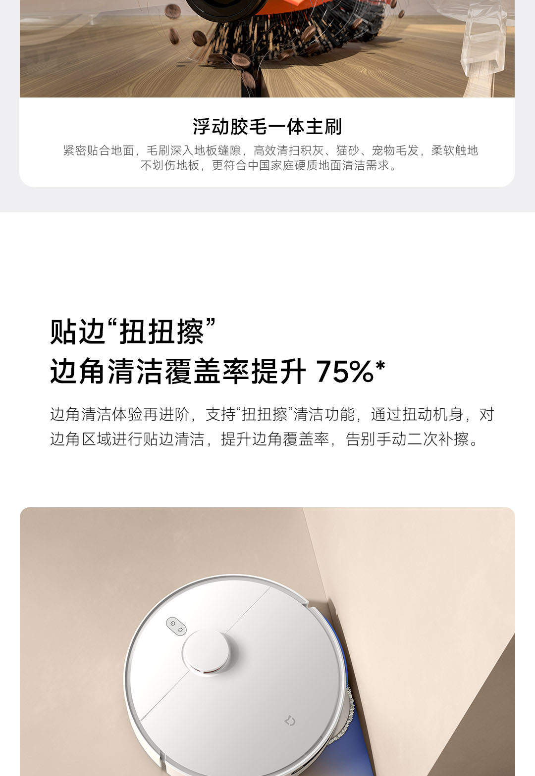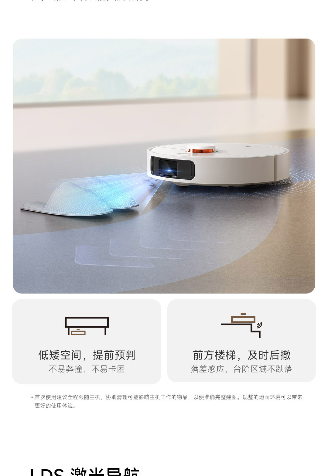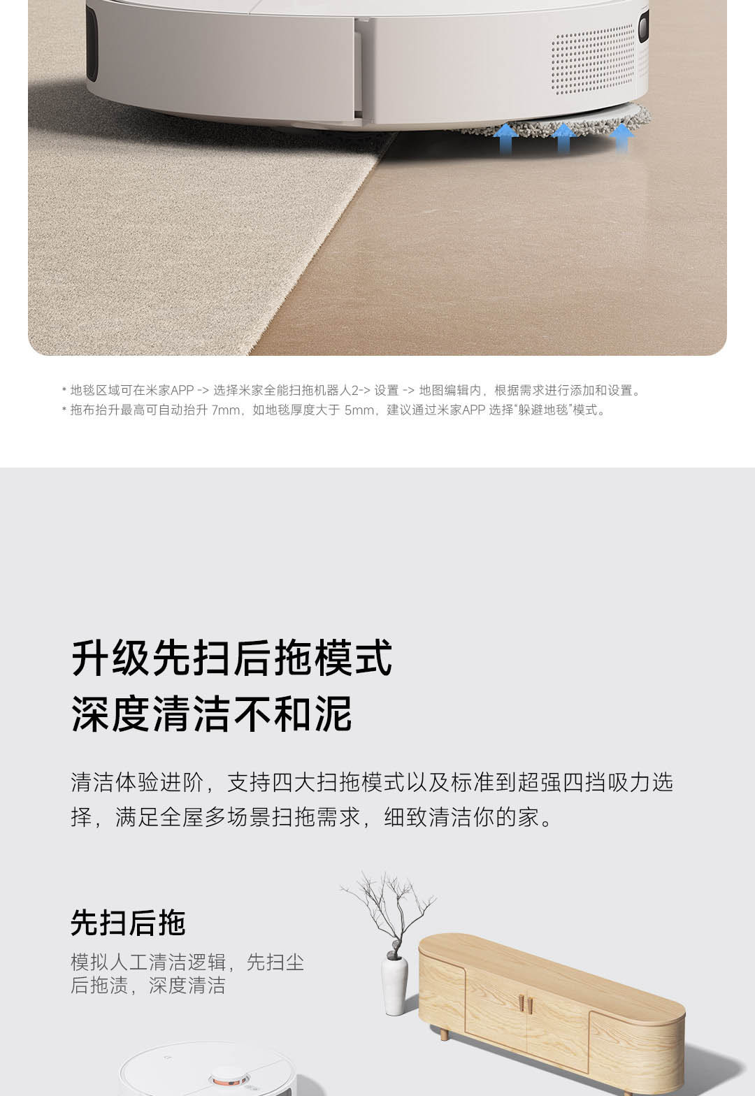 6000Pa强力风机,拖布智能抬升;
