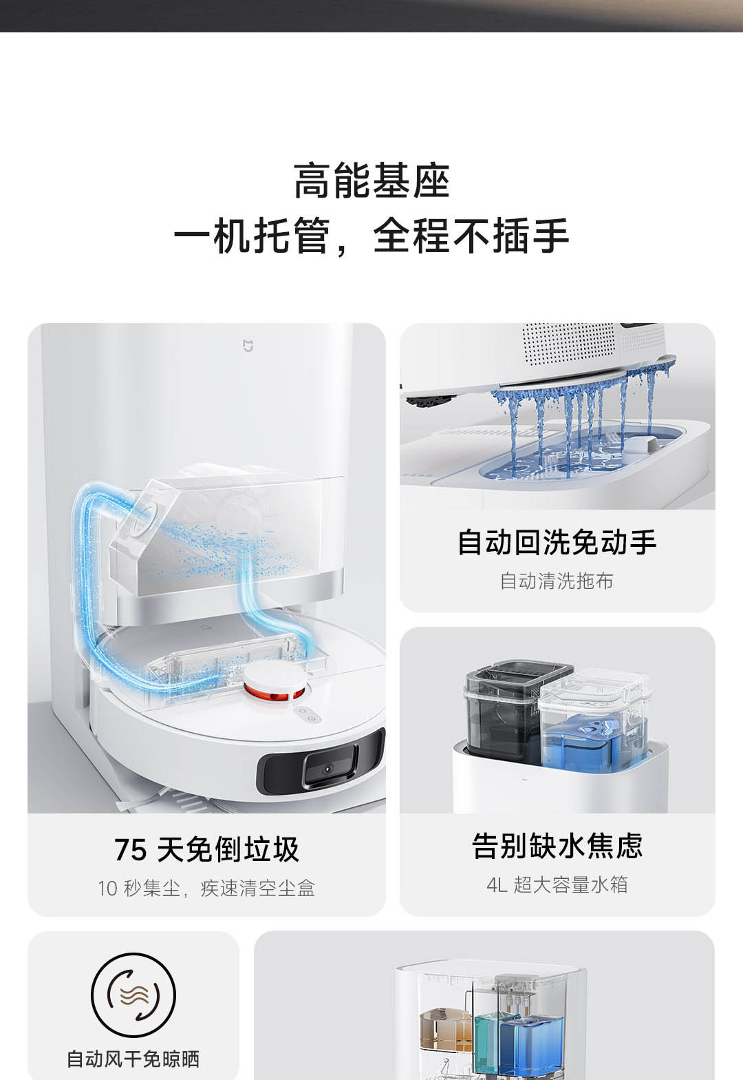 10秒集尘,4L超大容量水箱;