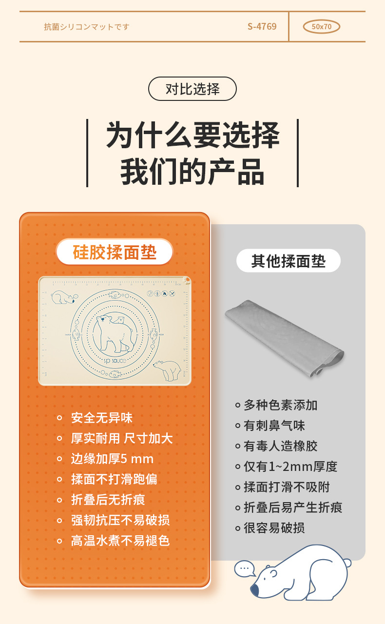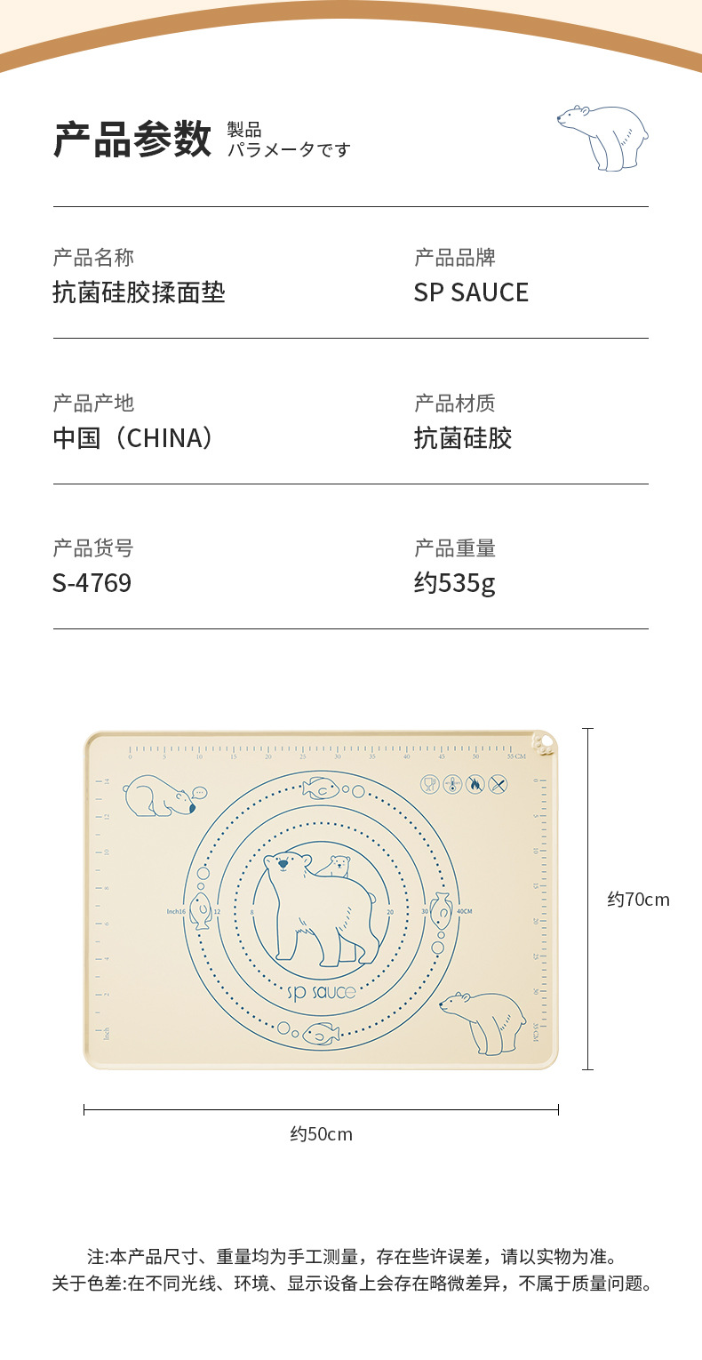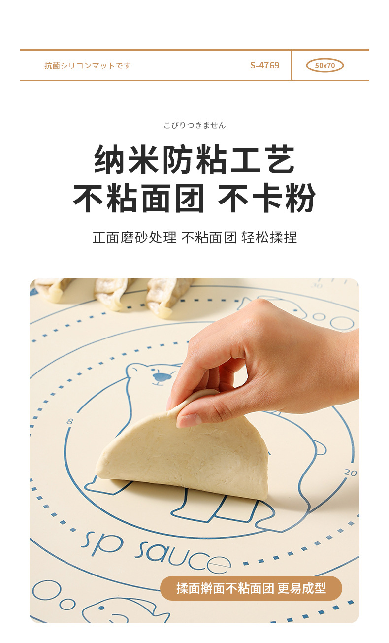 SP SAUCE硅胶揉面垫 擀面垫和面团垫食品级家用不粘大号加厚案板
