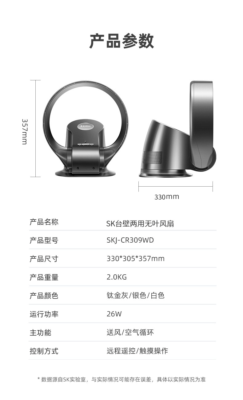 SK无叶风扇家用台式挂壁扇直流变频节能落地扇婴儿童孕妇老人遥控电风扇 全新升级款